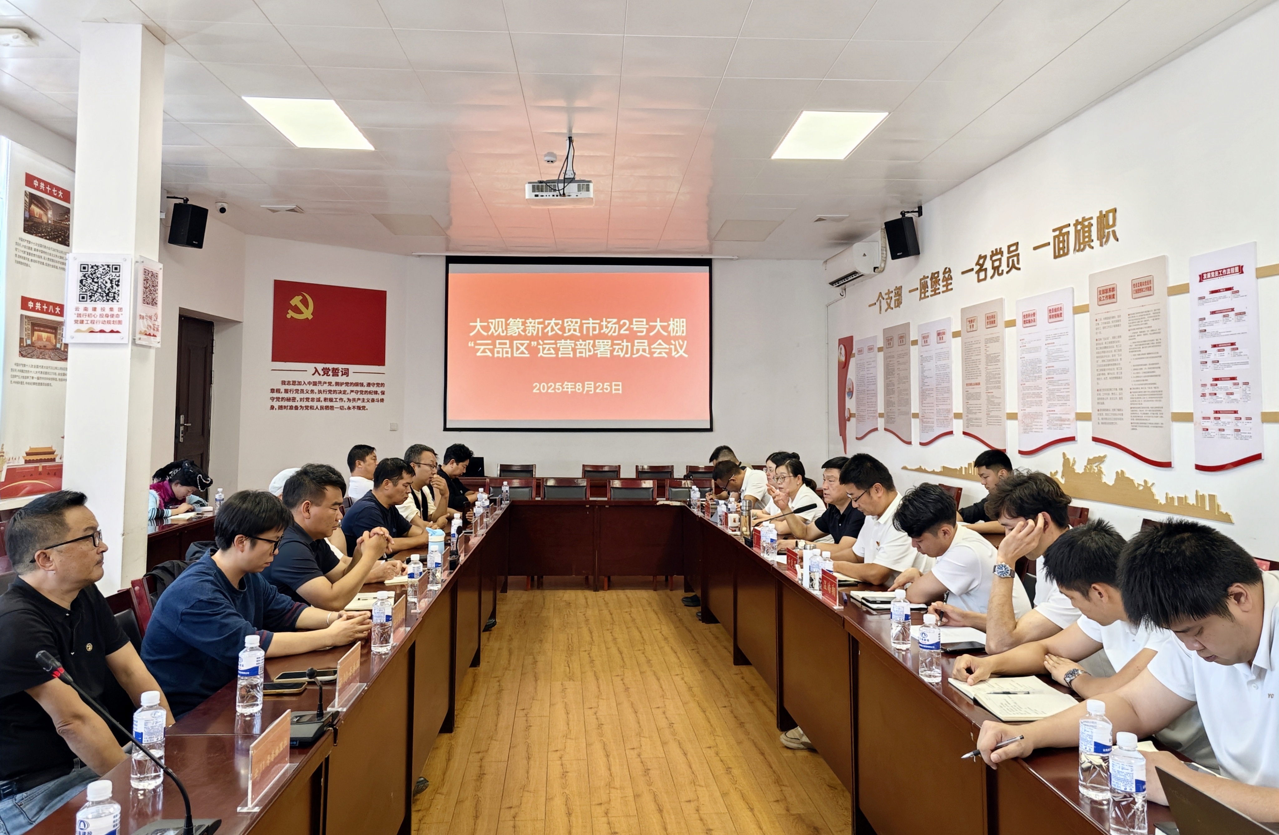 8月25日下午,公司組織召開大觀篆新農(nóng)貿(mào)市場2號大棚“云品區(qū)”運營部署動員會,公司黨委書記、董事長彭云出席會議,篆新公司全體班子成員、云品區(qū)和商戶管理人員參加。