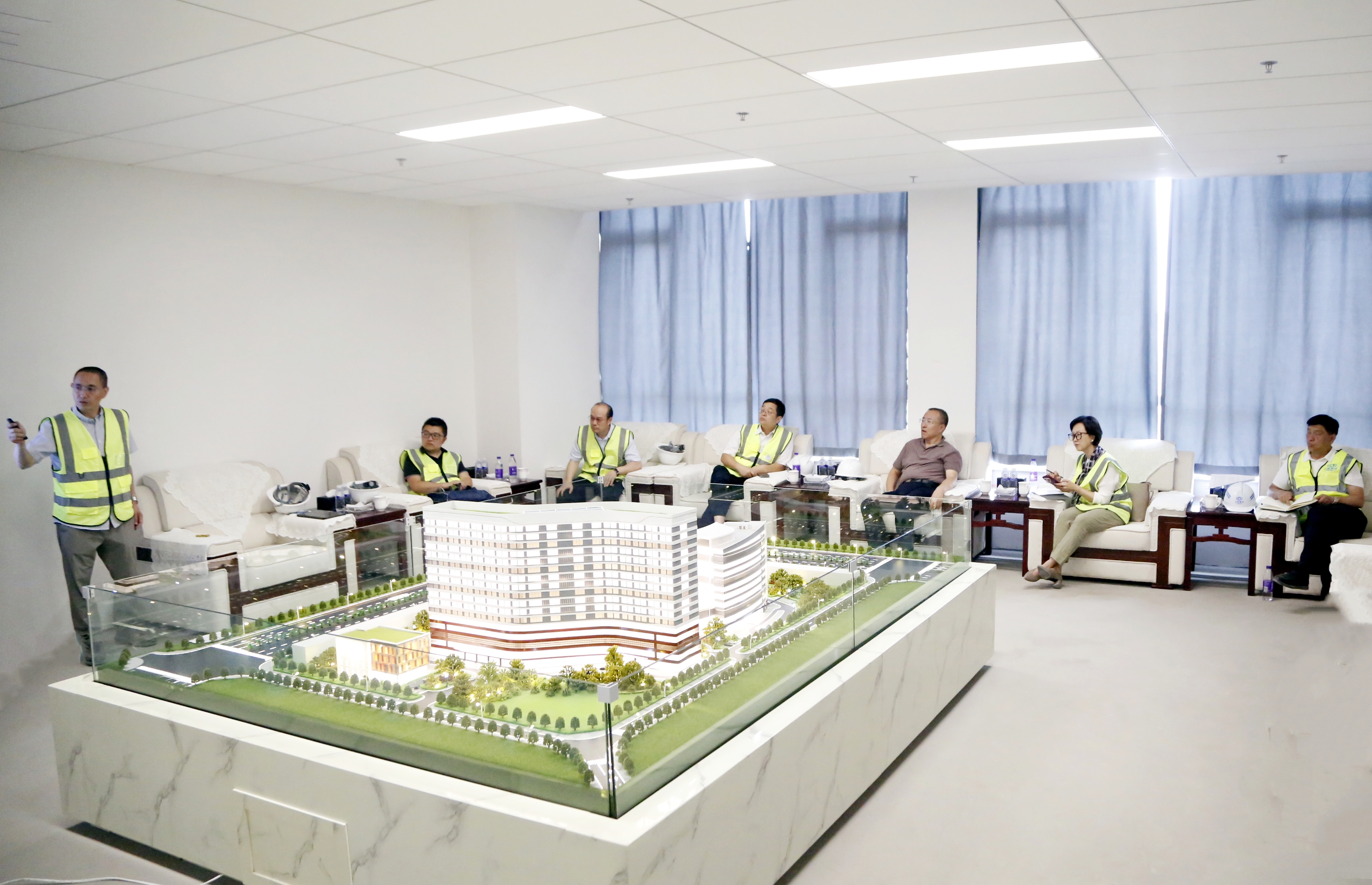 姜旭深入施工一線,實地察看門診醫(yī)技樓、住院樓精裝修樣板區(qū),認(rèn)真聽取項目負(fù)責(zé)人關(guān)于整體規(guī)劃、資金使用、后續(xù)施工等方面的匯報,對項目主體外觀設(shè)計表示贊許。姜旭強(qiáng)調(diào),婦幼健康是全民健康的基石,各相關(guān)單位要切實把項目建設(shè)好、管理好,在保證質(zhì)量和安全的前提下,科學(xué)調(diào)配資源,優(yōu)化施工流程,加快項目建設(shè)進(jìn)度,力爭早日投入使用;要注重完善功能,結(jié)合婦幼健康服務(wù)特點,進(jìn)一步優(yōu)化科室布局和服務(wù)流程,完善配套設(shè)施建設(shè),為婦女兒童提供舒適、溫馨的就醫(yī)環(huán)境;要加強(qiáng)資金管理,確保每一筆資金都用在“刀刃上”,并爭取多方資金支持,為項目順利推進(jìn)提供堅實資金保障。