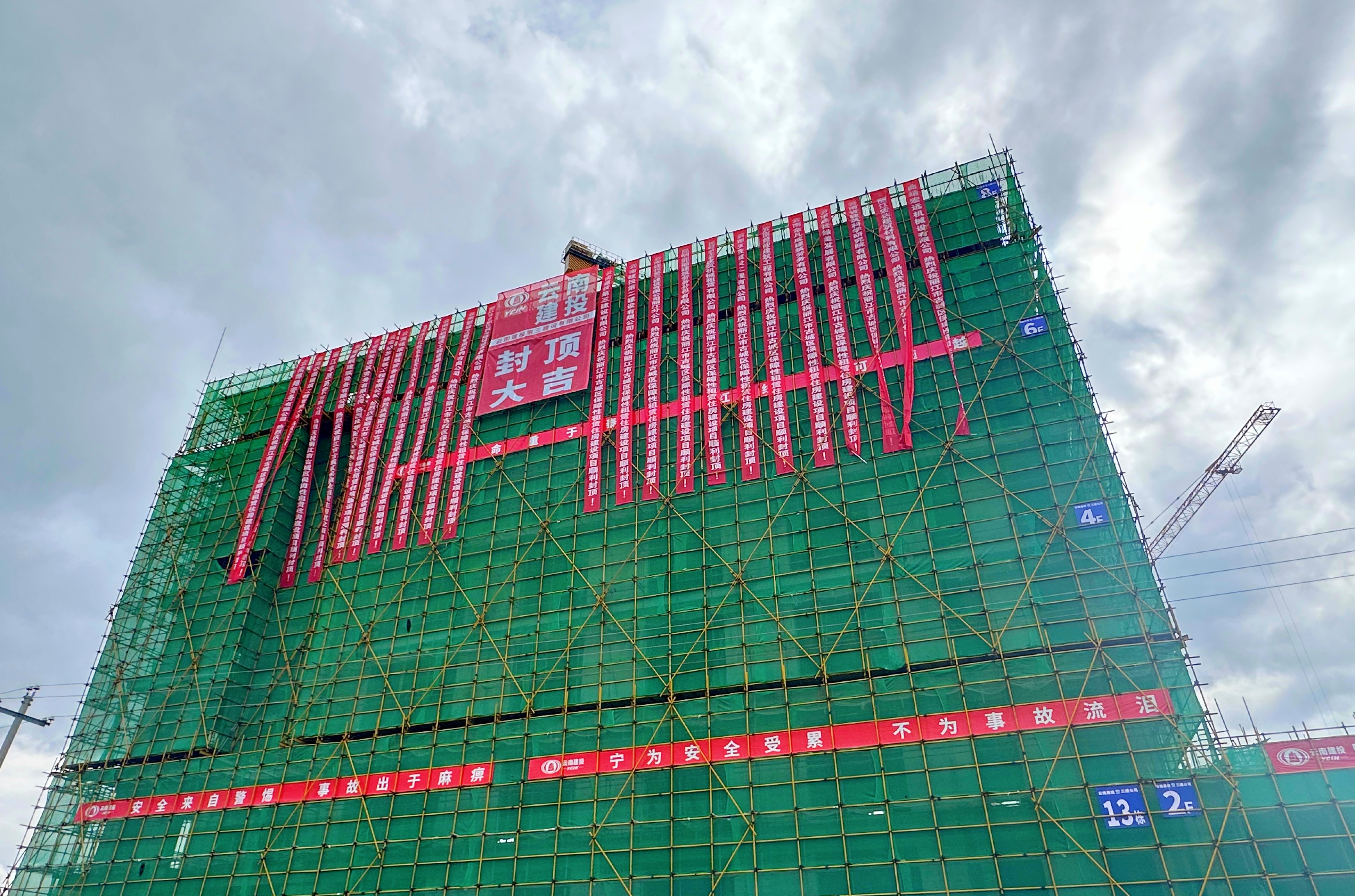 7月6日下午,隨著最后一方混凝土澆筑完成,公司承建的麗江市古城區(qū)保障性租賃住房建設(shè)項目第13棟主體結(jié)構(gòu)順利封頂,標(biāo)志著項目建設(shè)取得了階段性勝利。