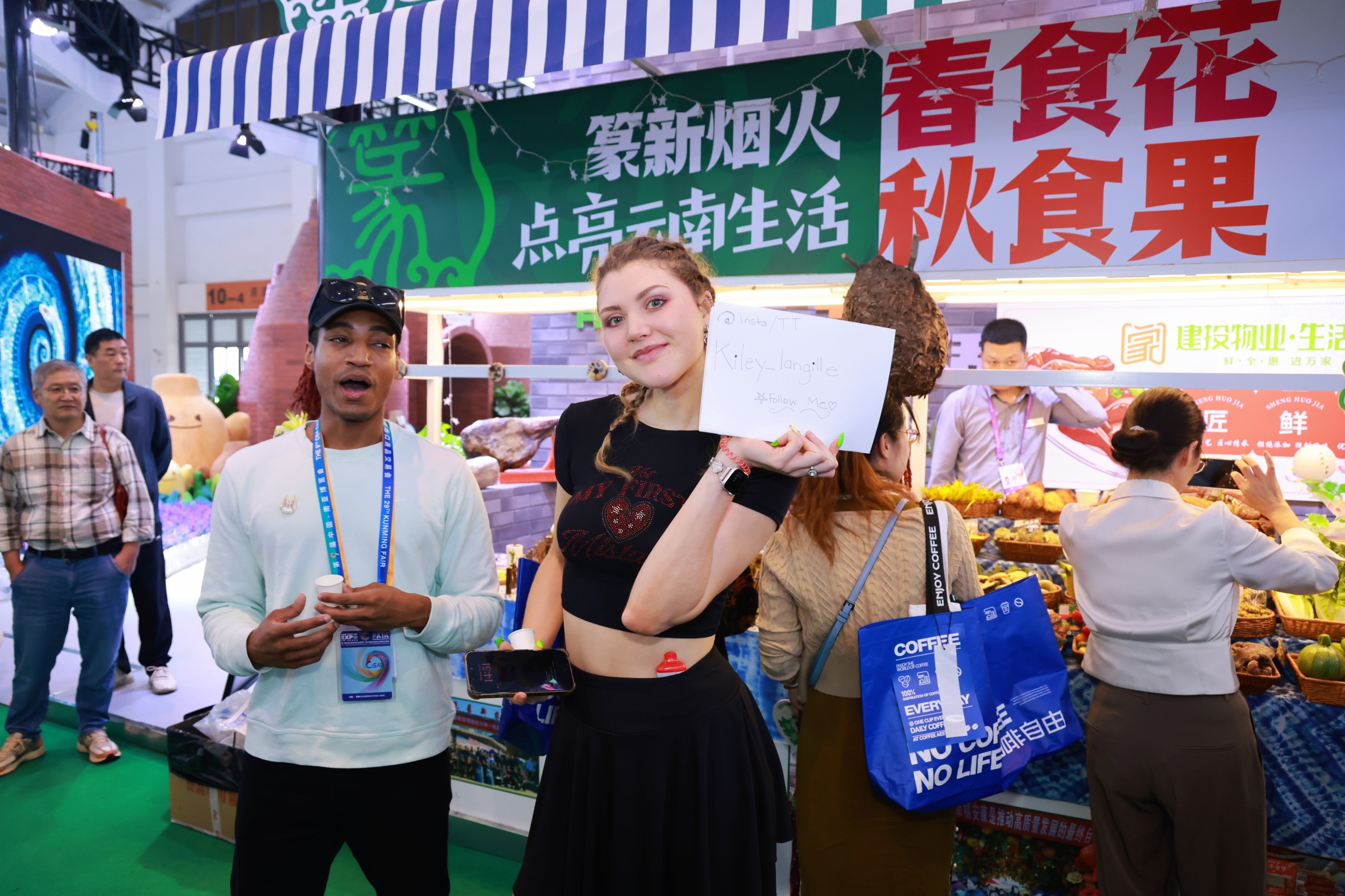 無論本地市民,還是來自全國各地乃至海外的游客,都被現(xiàn)場(chǎng)撲鼻而來的云南美食香氣吸引,紛紛駐足拍照打卡。游客們一邊品嘗一邊交流,贊不絕口,不少外國游客更是連連驚嘆:
