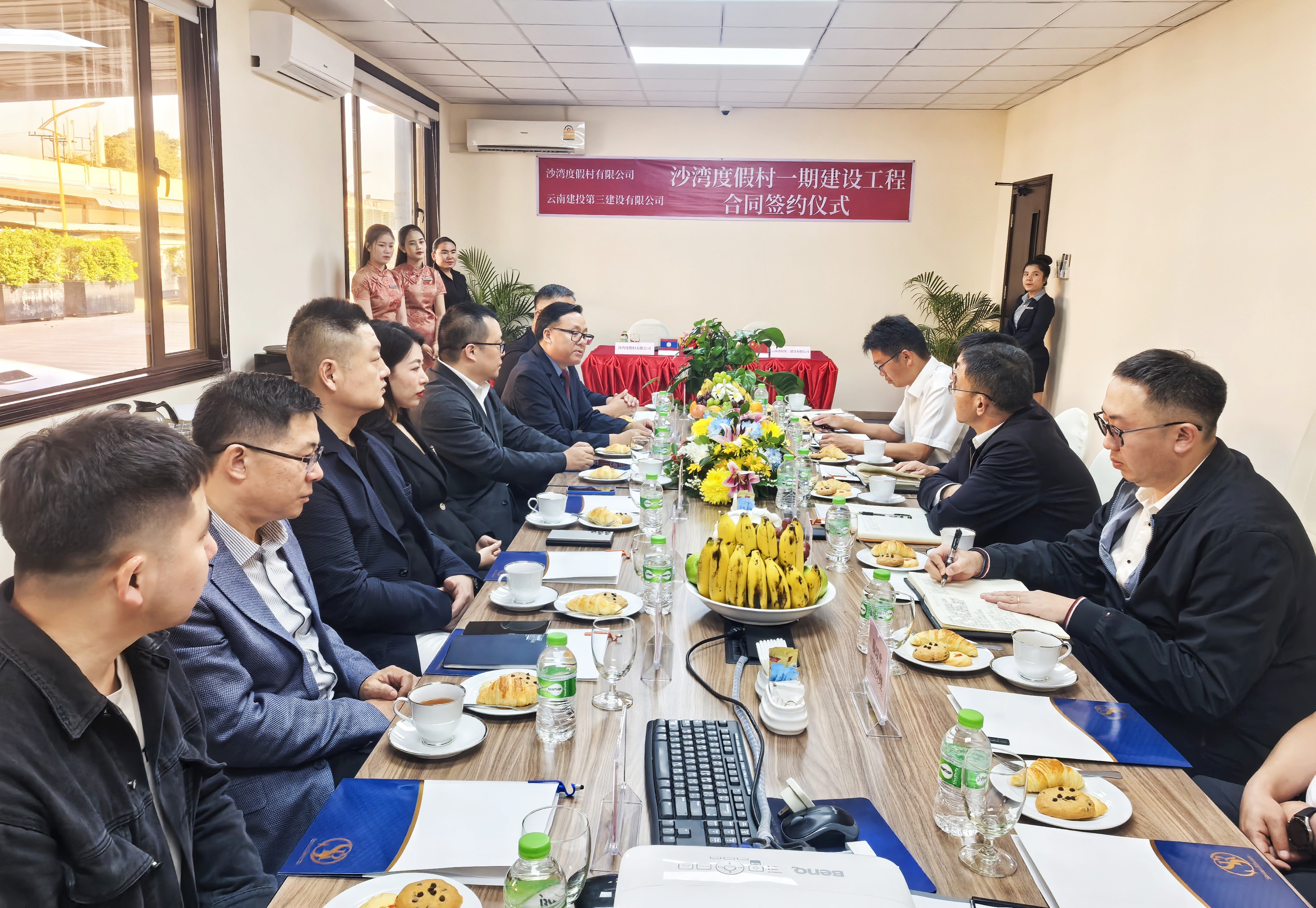 李騫代表公司簽訂了沙灣度假村一期改擴建項目施工總承包合同。沙灣度假村總裁吉瑪對公司在老撾承建的項目表示高度認可,希望公司繼續(xù)發(fā)揚優(yōu)良作風(fēng),發(fā)揮專業(yè)優(yōu)勢,充分整合資源,加強項目全過程綜合管理,確保項目圓滿實施。