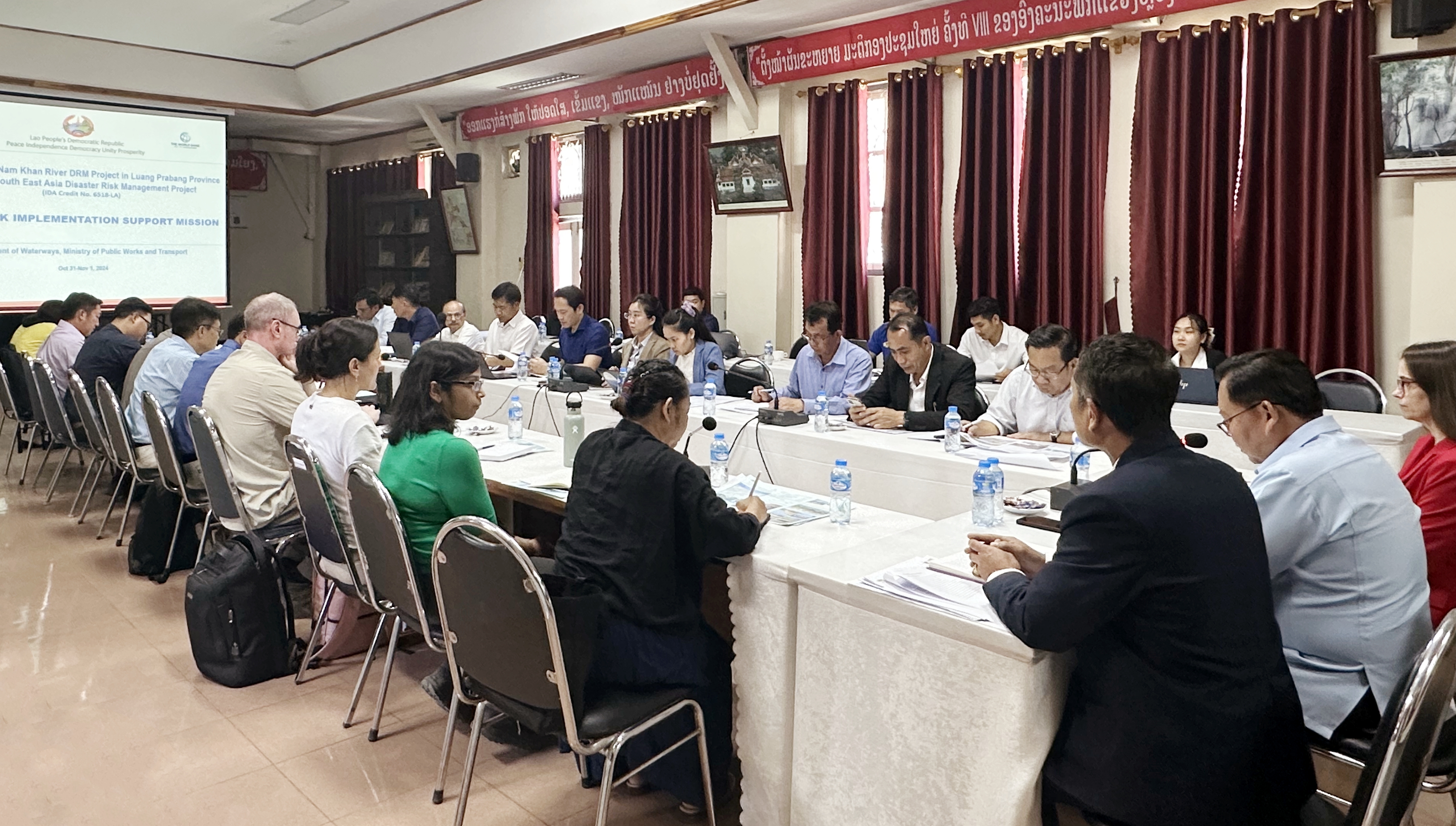 11月1日,老撾公共工程與運輸部水利司項目管理單位攜世界銀行代表、世界文化遺產(chǎn)保護單位,老撾公共工程與運輸研究院、財政部、計劃投資部及瑯勃拉邦協(xié)調(diào)辦等相關(guān)人員到公司承建的老撾瑯勃拉邦省湄公河和南康河災害風險管理項目調(diào)研。