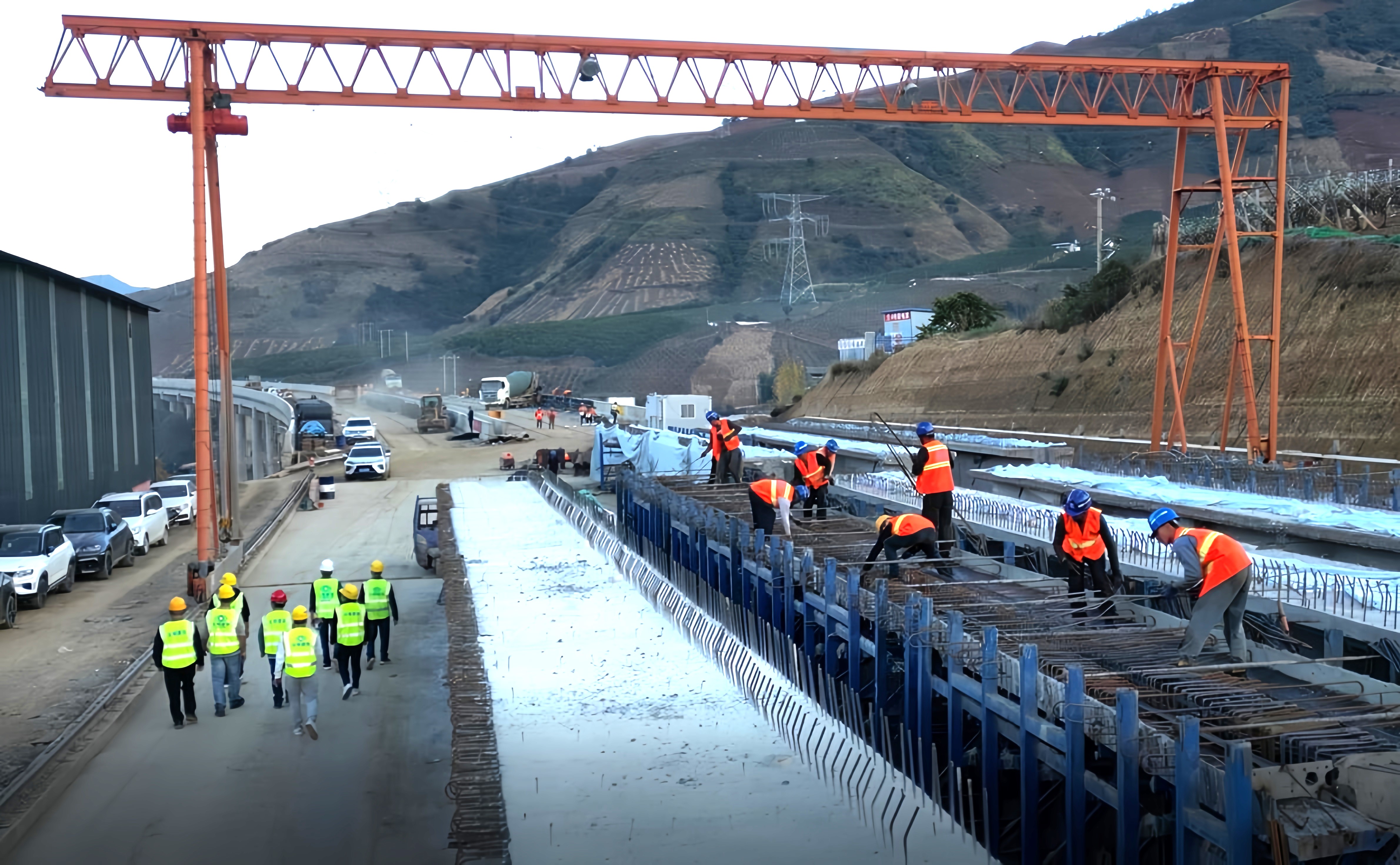 項目團隊按照“首件先行,樣板引路”的原則,以首片T梁的成功澆筑為基礎,不斷優(yōu)化施工方案形成經(jīng)驗樣板,從技術(shù)交底到鋼筋綁扎,從吊裝支模到混凝土澆筑,均由現(xiàn)場管理人員進行旁站監(jiān)督,并對現(xiàn)場操作人員進行技術(shù)交底、質(zhì)量控制交底以及安全交底,從而保證施工安全、質(zhì)量可控。項目部還通過組織勞動競賽、制定施工節(jié)點任務銷項獎勵制度,激勵作業(yè)班組保質(zhì)保量完成施工任務。