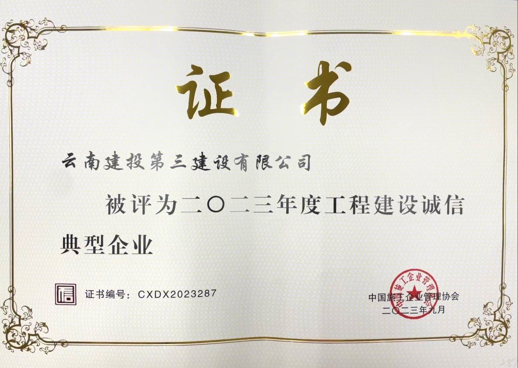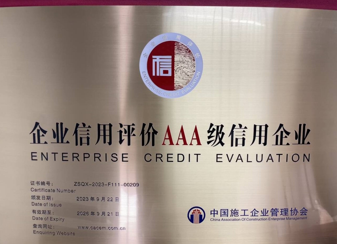 近日,公司順利通過中國施工企業(yè)管理協(xié)會組織的2023年度誠信典型企業(yè)申報評選以及信用評價復評工作,獲評“2023年度工程建設誠信典型企業(yè)”“2023-2026年工程建設AAA信用等級企業(yè)”“2023年度工程建設信用星級企業(yè)”,獲得工程建設企業(yè)信用星級15星。