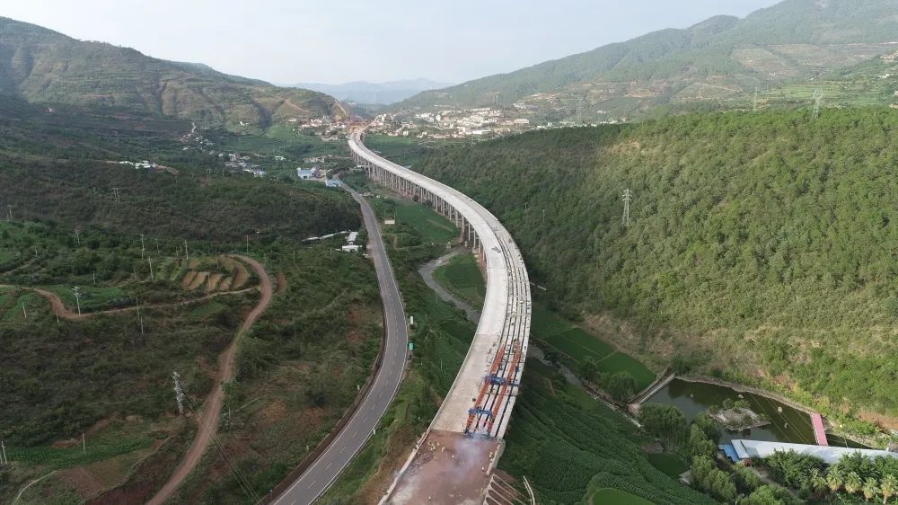 5月2日,鎮(zhèn)雄縣至果珠火車站至大灣公路工程(二分部)董家田特大橋最高墩13#橋墩順利封頂。