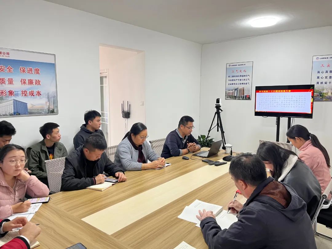 直管部經(jīng)理圍繞黨的二十大會議主題和主要成果、中國共產(chǎn)黨過去5年的工作和新時代10年的偉大變革等方面對黨的二十大的重大意義、豐富內(nèi)涵、精神實質(zhì)作了全面闡述。并提出:學習貫徹黨的二十大精神是當前和今后一個時期的首要政治任務,要在全面學習、全面落實上下功夫,切實把思想和行動統(tǒng)一起來,青年職工要堅定不移聽黨話、跟黨走,懷抱夢想又腳踏實地,敢想敢為又善作善成,為公司內(nèi)涵式高質(zhì)量發(fā)展貢獻力量。