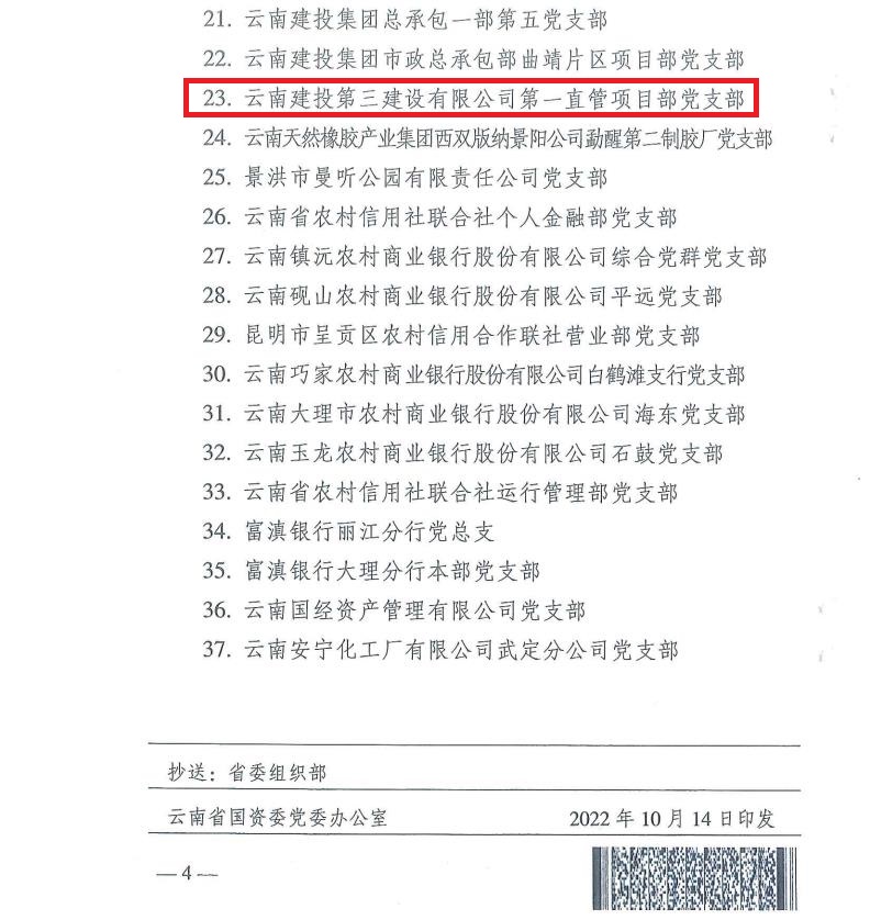 近日,按照云南省國(guó)資委黨委關(guān)于黨支部規(guī)范化建設(shè)達(dá)標(biāo)創(chuàng)建工作部署,在逐級(jí)推薦、擇優(yōu)遴選的基礎(chǔ)上,公司第一直管項(xiàng)目部黨支部通過(guò)復(fù)核驗(yàn)收,獲云南省國(guó)資委黨委命名的2021年度“規(guī)范化建設(shè)示范黨支部”榮譽(yù)。