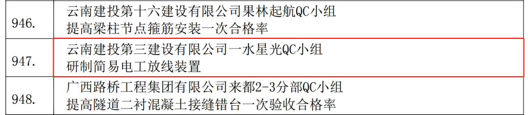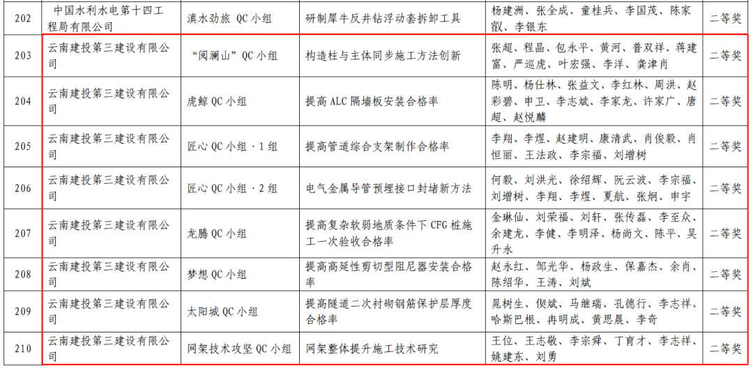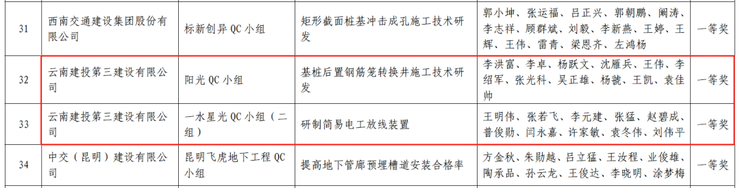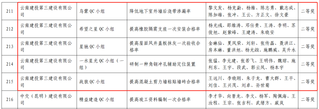 除此之外,中國建筑協(xié)會、云南省建筑業(yè)協(xié)會、云南省市政工程協(xié)會先后發(fā)布了2022年度優(yōu)秀QC成果獲獎名單,公司17個QC成果均獲獎。