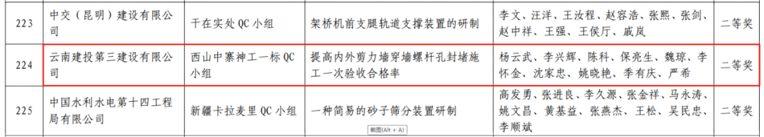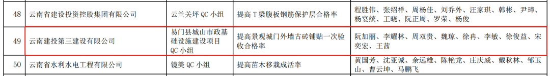 除此之外,中國建筑協(xié)會、云南省建筑業(yè)協(xié)會、云南省市政工程協(xié)會先后發(fā)布了2022年度優(yōu)秀QC成果獲獎名單,公司17個QC成果均獲獎。