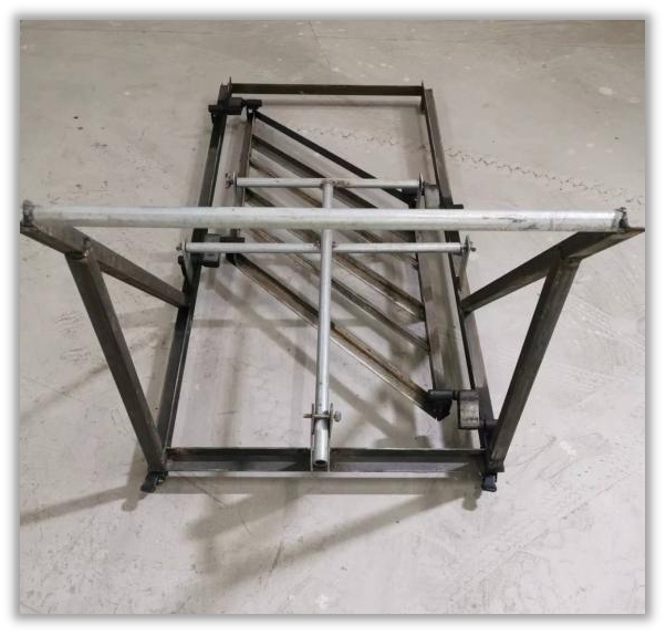 本工程地下室包括106臺風機機組,為提高接地扁鋼整體觀感,項目部自主研制接地扁鐵色標加工噴涂模具,采用30*3角鋼焊制成45°(135°)500mm*600mm的菱形邊框(可根據(jù)實際需求調整大?。?,在邊框兩側焊上提耳和腳踏板,然后在框內每隔100mm設置一道寬100mm分隔板,最后在磨具底部接觸面安裝一層橡膠或其他柔性材料,防止噴涂油漆時因磨具與扁鐵接觸面不緊密導致串色、分隔線條模糊。