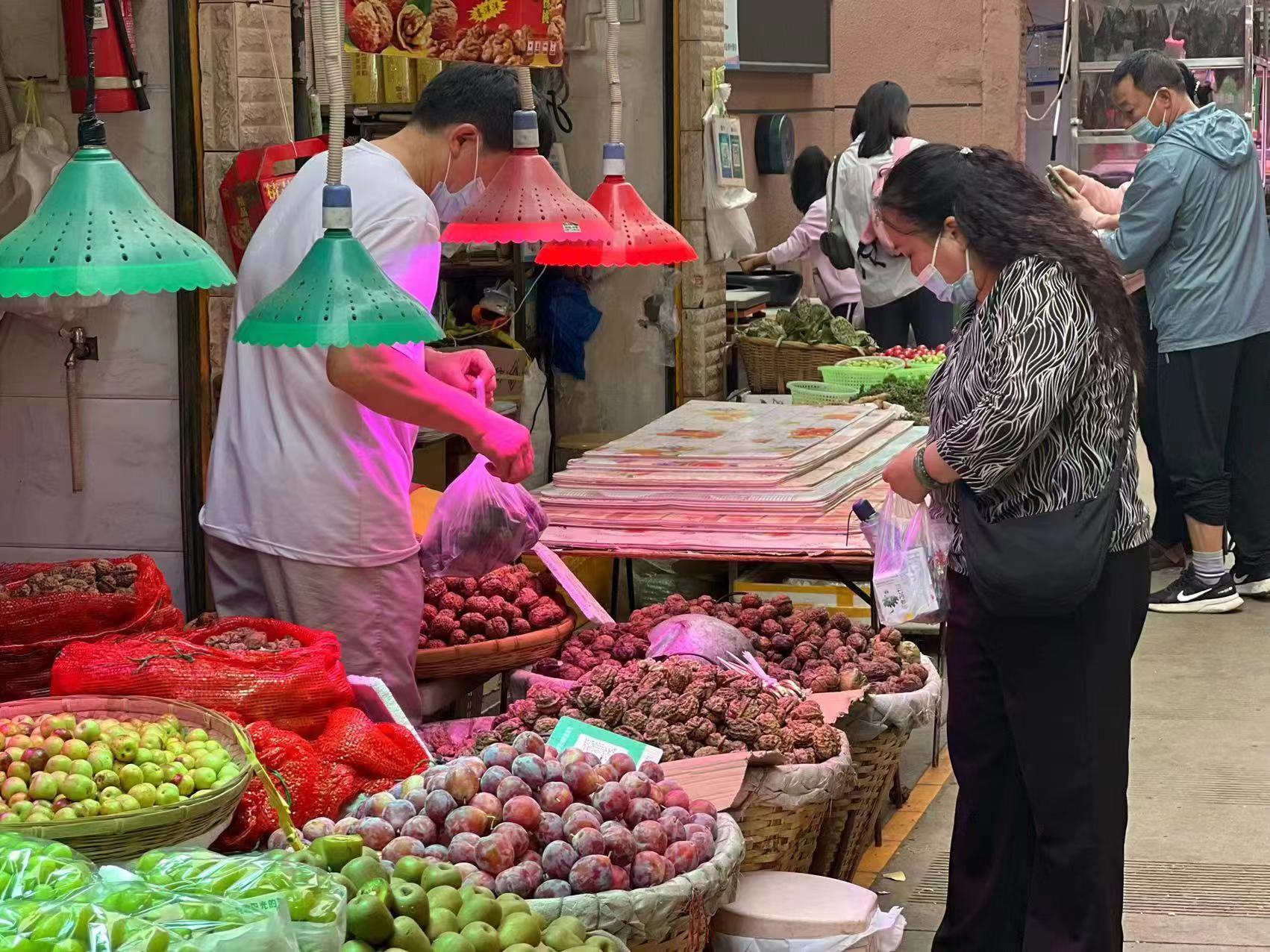 1.目前,大觀篆新農(nóng)貿(mào)市場各類蔬菜、肉類、海鮮、水果等供應充足,請前來市場購買食材的市民朋友們理性采買。