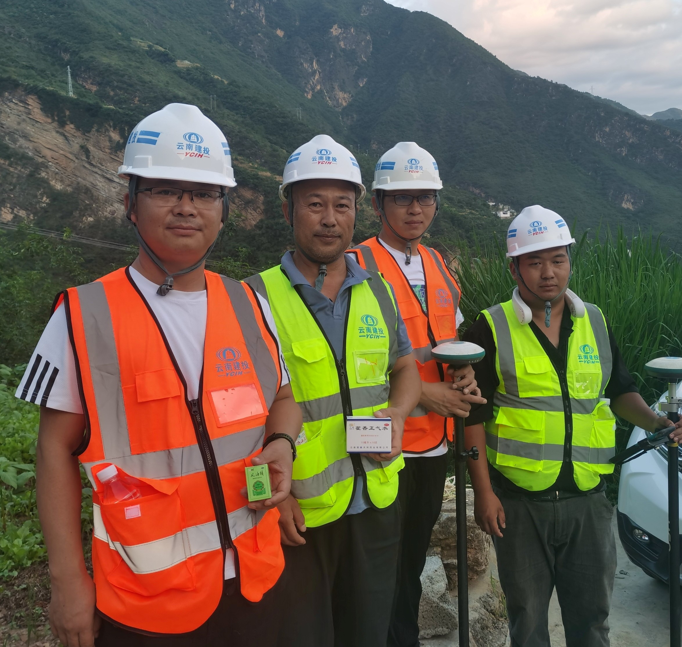 慶幸這些可愛又偉大的人兒們有堅(jiān)強(qiáng)的后盾,為了防止這些勇士中暑,項(xiàng)目部第一時(shí)間為每一位測(cè)量人員配備了風(fēng)油精、掛脖式風(fēng)扇、礦泉水以及藿香正氣水等防暑物資,重新規(guī)劃作息時(shí)間,避開持續(xù)升溫的時(shí)間段,讓他們?cè)谘籽紫娜绽锔惺艿絹碜院蠓降慕z絲清涼與掛念。