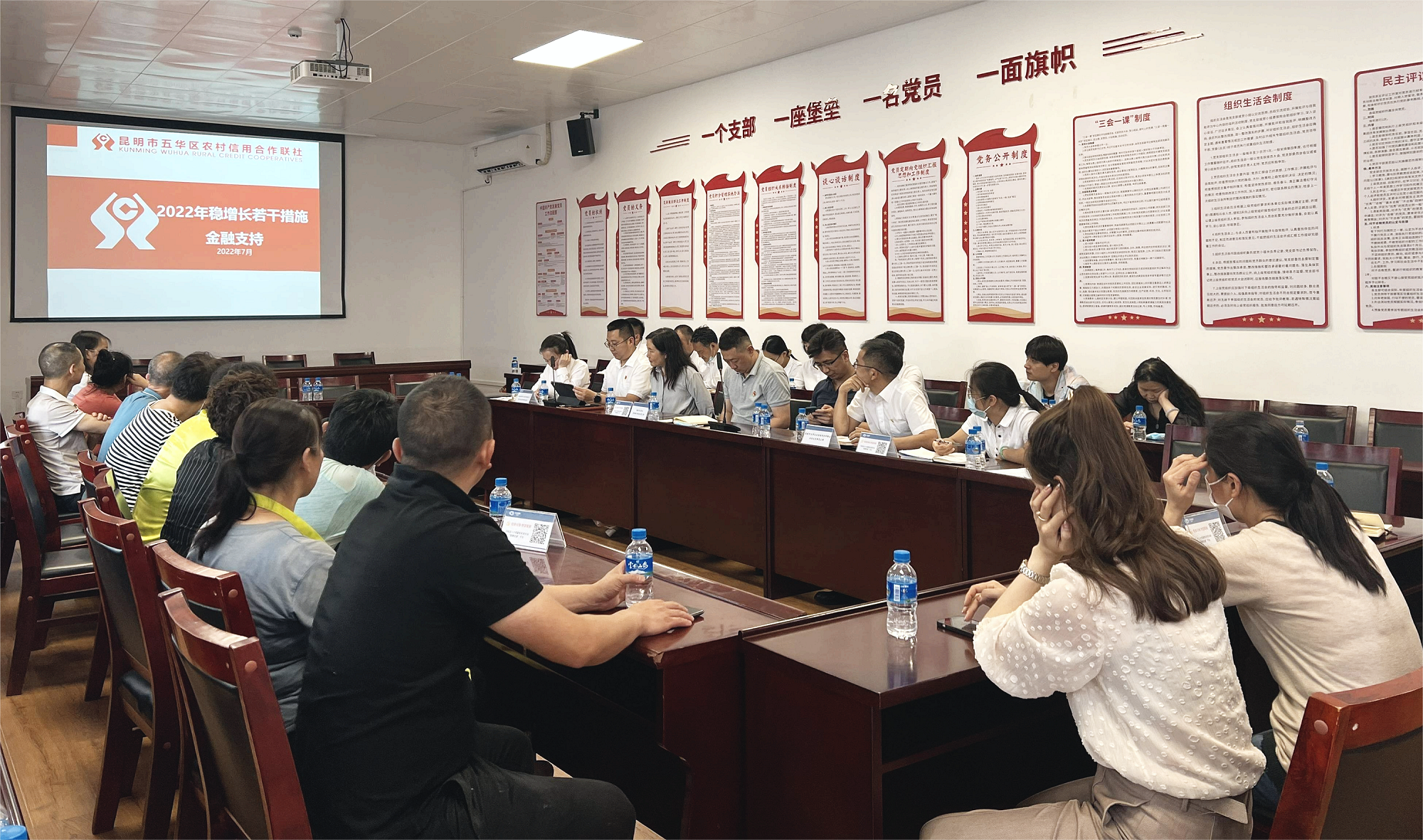 7月18日,資產(chǎn)運營管理部黨支部邀請昆明市五華區(qū)勞動就業(yè)服務(wù)局黨支部、五華區(qū)農(nóng)村信用合作聯(lián)社業(yè)務(wù)發(fā)展部黨支部聯(lián)合開展“黨建引領(lǐng)惠民生 助企紓困強服務(wù)”主題活動,20名篆新農(nóng)貿(mào)市場的商戶代表參加。