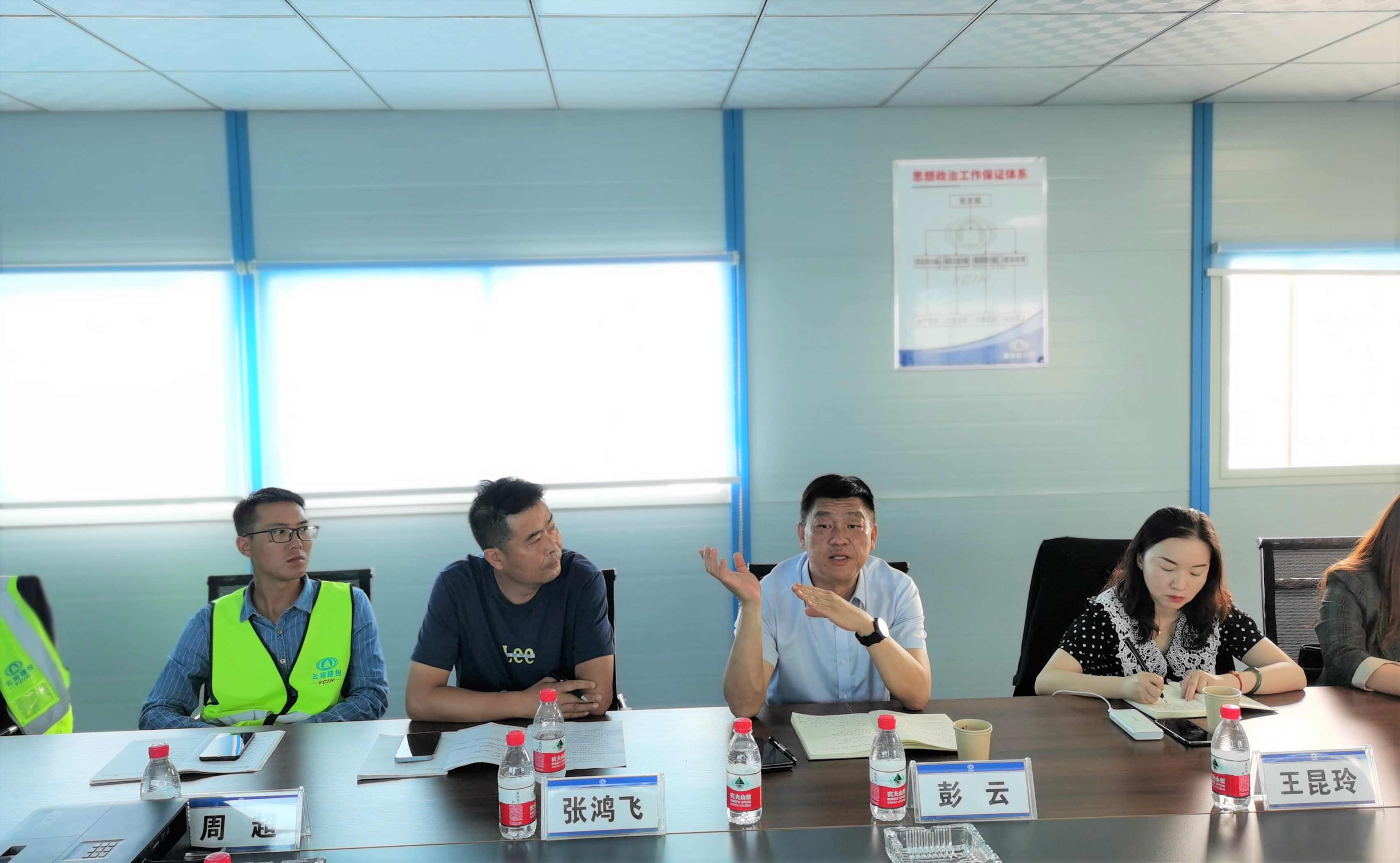 麗江市人民醫(yī)院院長助理楊利,綜合保障部副主任楊富華,行政事務(wù)部王化麟,公司黨委工作部部長王昆玲,女工主任靳易賢,第十七直管項目部班子成員參加會議。