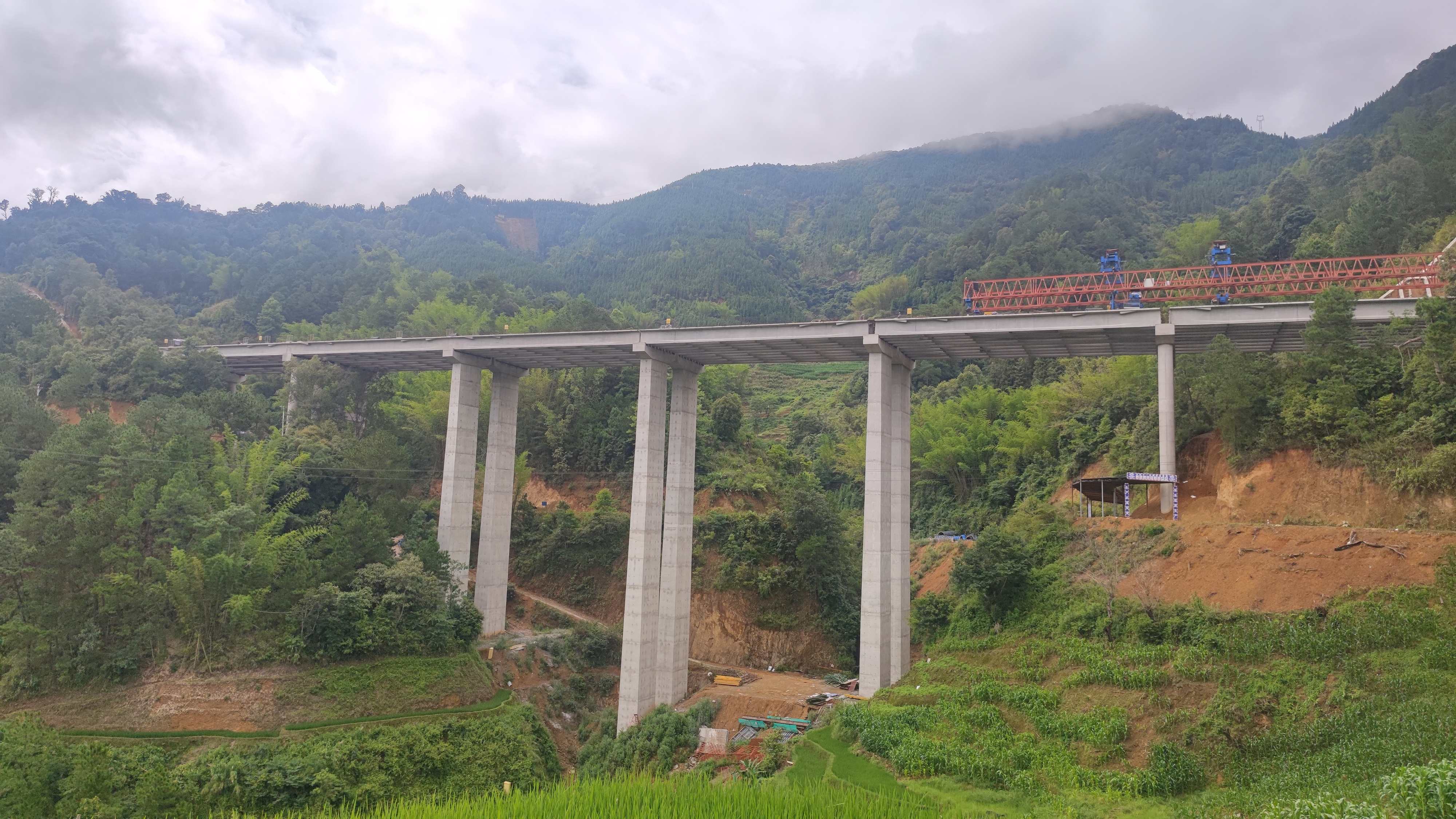 據(jù)悉,哈洛普施1號(hào)大橋位于元綠高速機(jī)場(chǎng)連接線紅河州紅河縣阿扎河鄉(xiāng),橫跨山坡中部溝谷,為分離式先簡(jiǎn)支后連續(xù)T梁橋,左右幅橋長(zhǎng)均為268.08m。上部結(jié)構(gòu)為預(yù)應(yīng)力T梁,共計(jì)70片,長(zhǎng)40m。下部結(jié)構(gòu)含圓柱墩及薄壁空心墩,最大高度為68m。