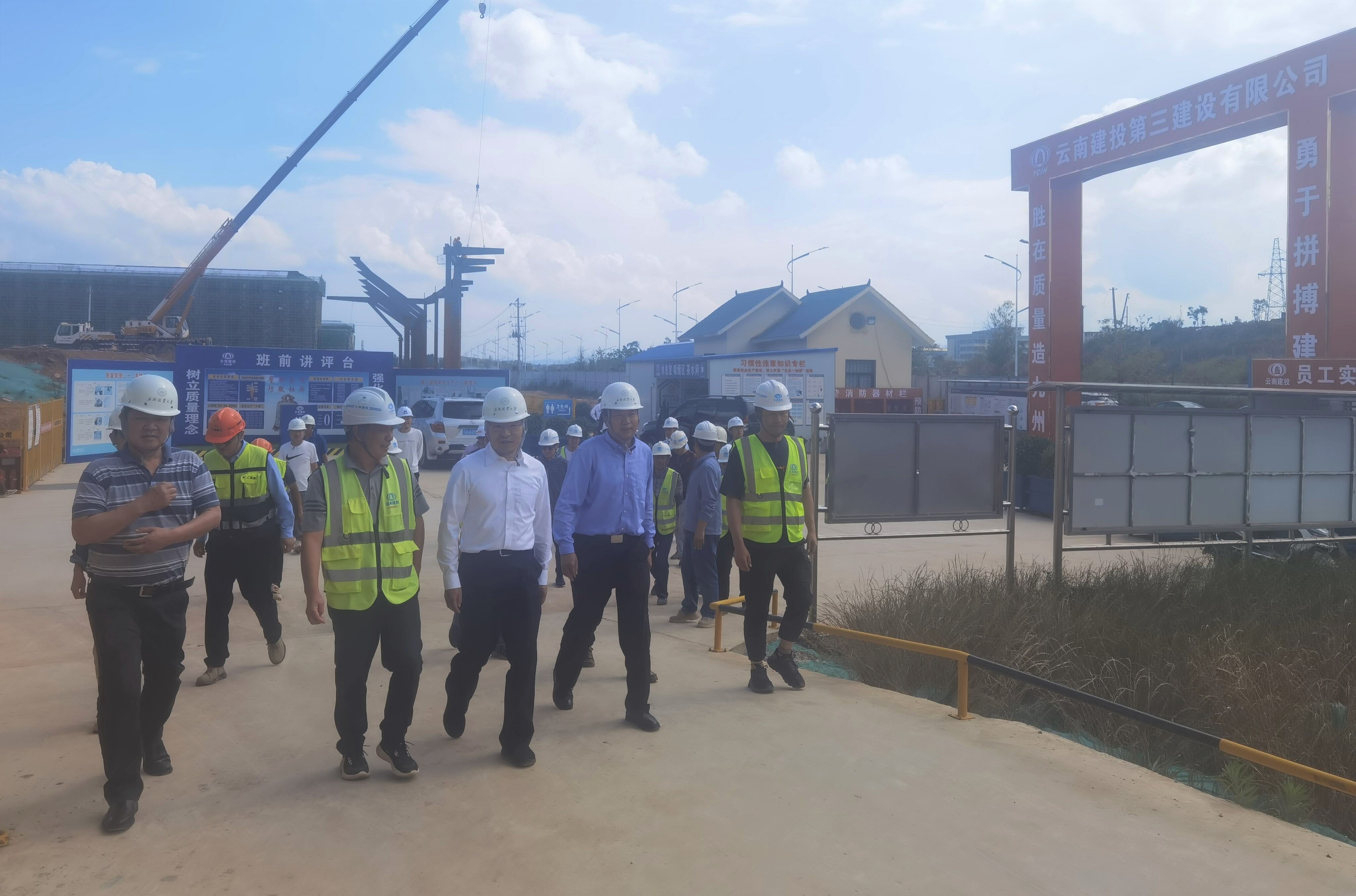 5月31日,西南林業(yè)大學(xué)黨委書記周學(xué)斌、副校長(zhǎng)兼石林校區(qū)建設(shè)項(xiàng)目指揮長(zhǎng)趙龍慶到第三項(xiàng)目經(jīng)理部承建的西南林業(yè)大學(xué)石林職業(yè)技術(shù)學(xué)院基礎(chǔ)設(shè)施建設(shè)項(xiàng)目(第二標(biāo)段)檢查指導(dǎo)。