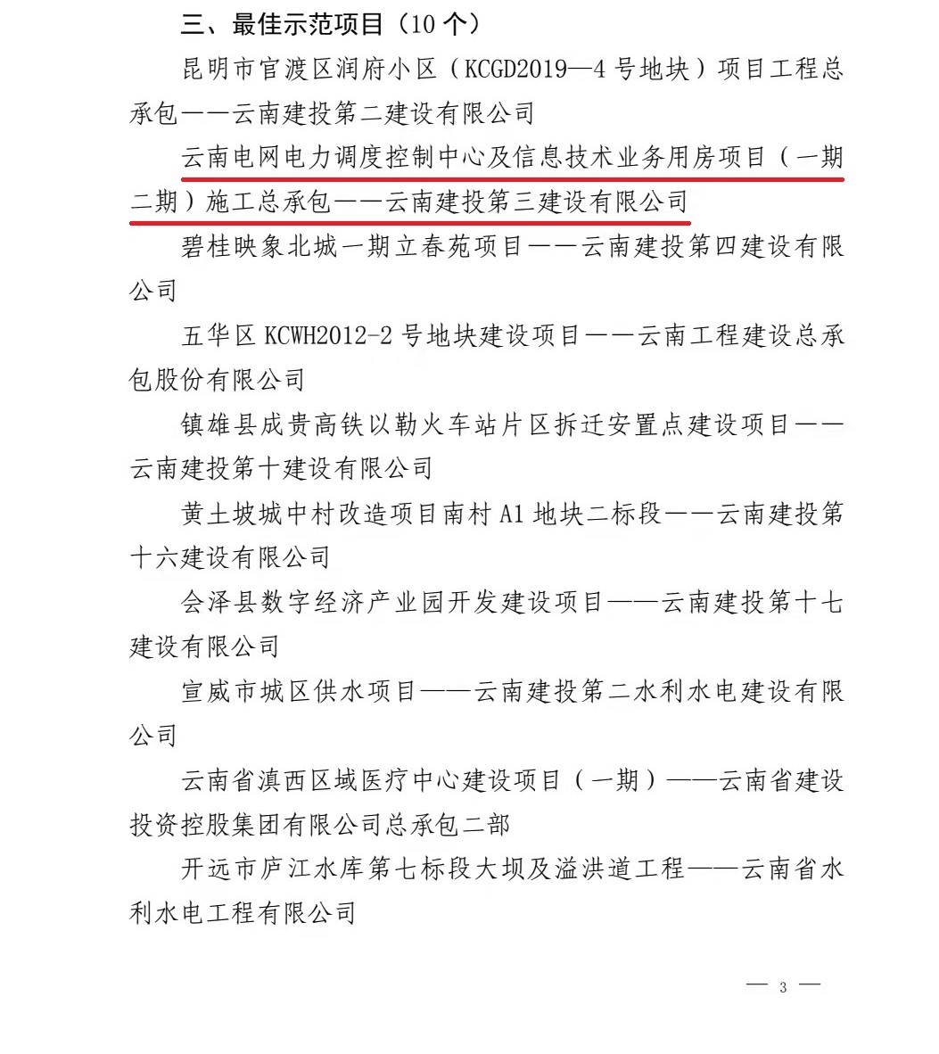 云南電網(wǎng)電力調(diào)度控制中心及信息技術(shù)業(yè)務(wù)用房項(xiàng)目榮獲“最佳示范項(xiàng)目”