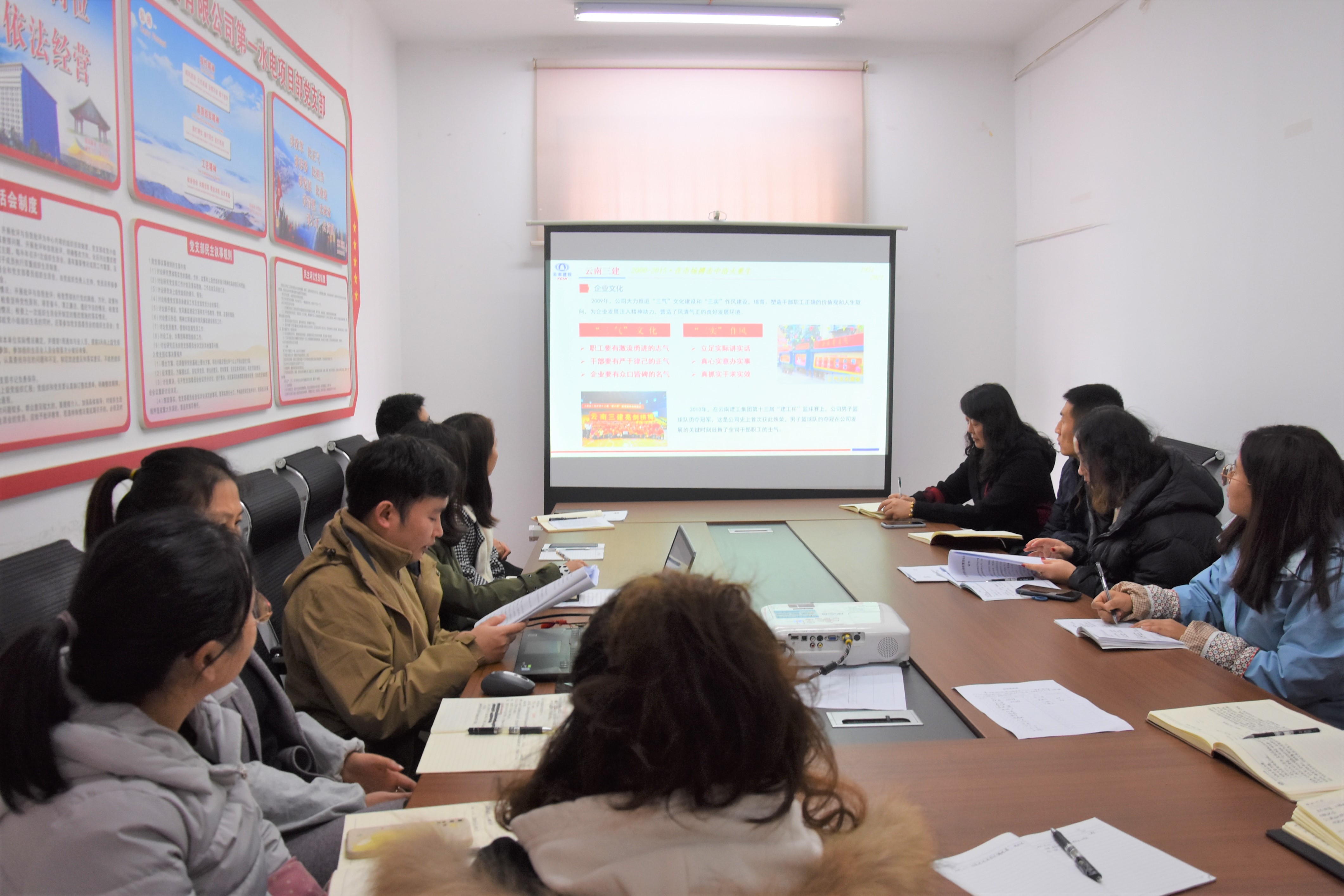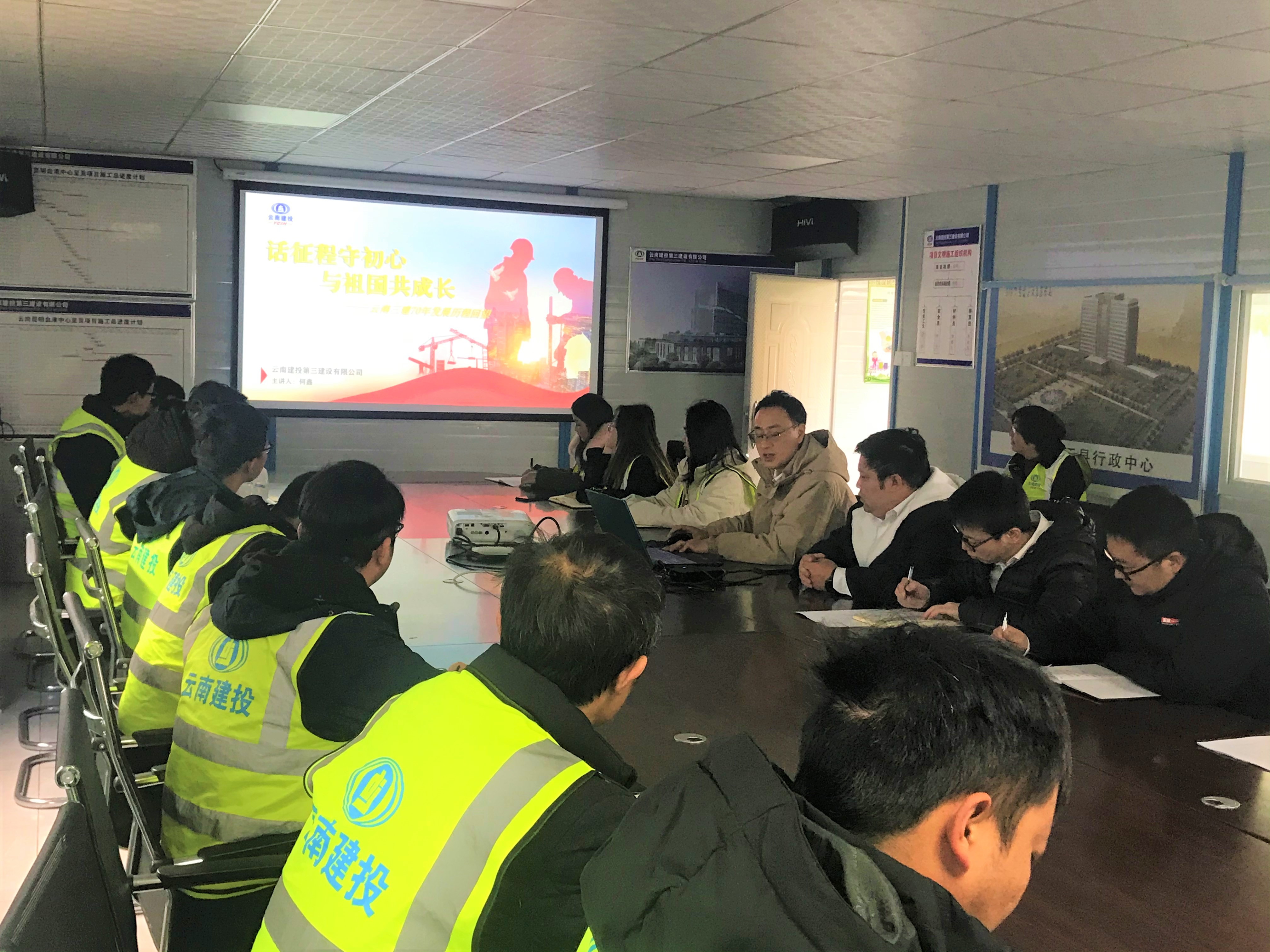 12月15日,第二項目經(jīng)理部以現(xiàn)場會議+直播課程的形式組織“云南三建70年發(fā)展歷程”的學習,共57人參與學習。