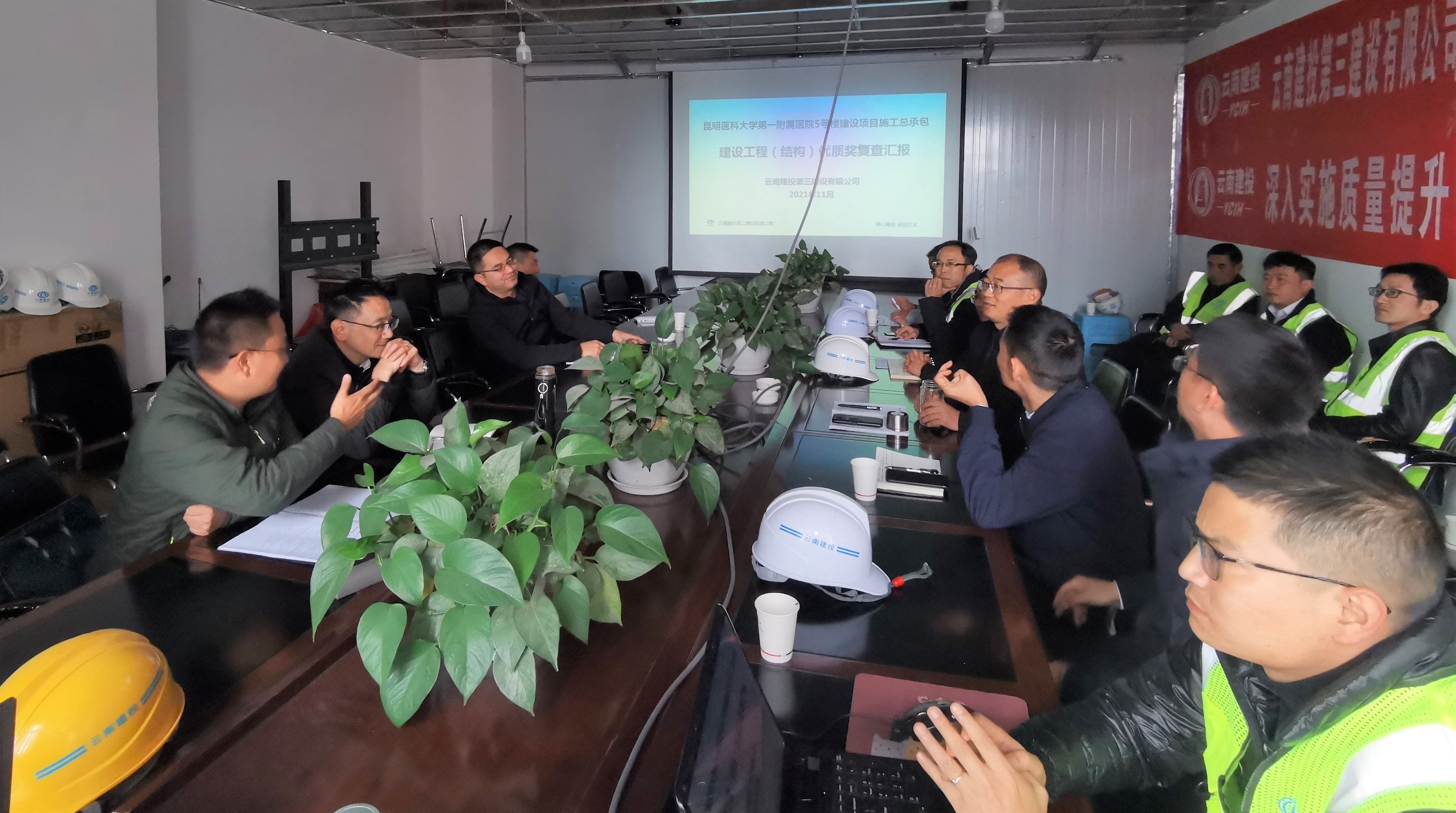 11月10日,集團(tuán)生產(chǎn)管理部副部長李曼琴一行對第二直管項(xiàng)目部承建的昆明醫(yī)科大學(xué)第一附屬醫(yī)院5號樓建設(shè)項(xiàng)目進(jìn)行集團(tuán)優(yōu)質(zhì)結(jié)構(gòu)工程復(fù)查,同時(shí)對即將申報(bào)魯班獎(jiǎng)的項(xiàng)目進(jìn)行摸底考察。