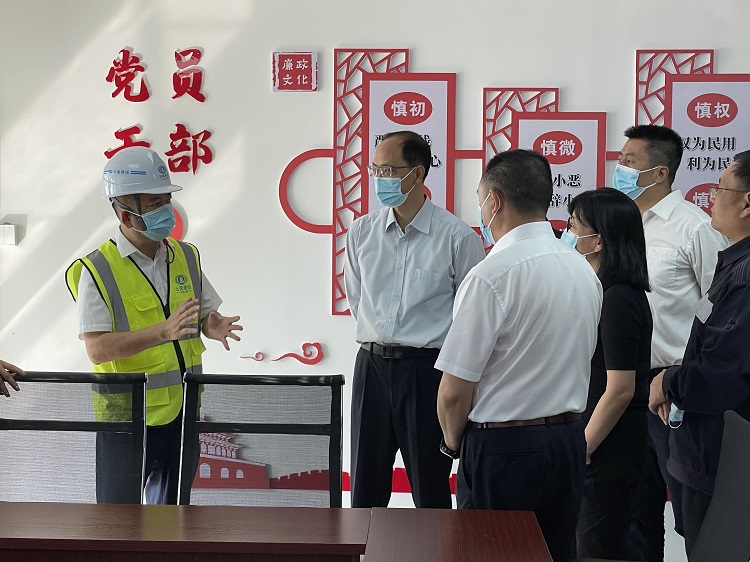 張忠東一行分別參觀了項目智慧工地指揮中心、黨建活動室、職工驛站,并到施工現場實地調研了項目建設情況。