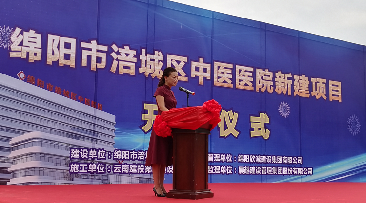 涪城區中醫醫院院長姚順春介紹建設項目情況,并宣布開工儀式正式開始,綿陽市涪城區人大常委會副主任李里為本次啟動儀式致辭。