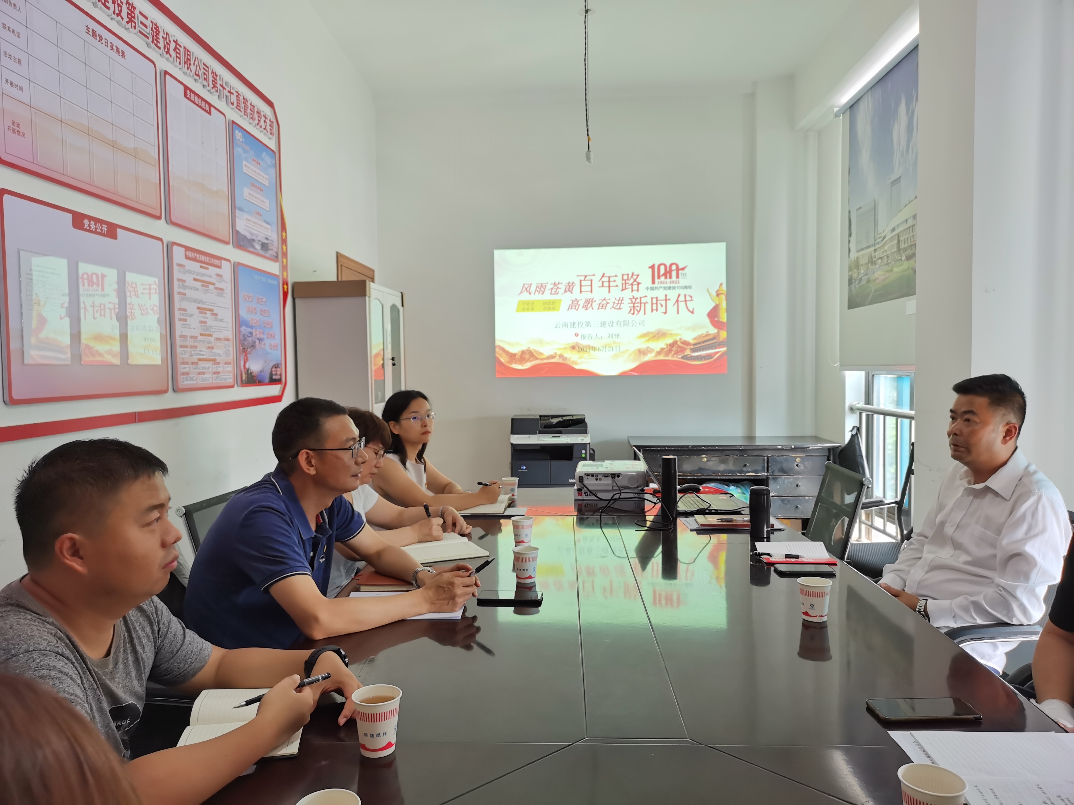 6月26日,公司黨委委員、副總經理陳波以《學黨史悟初心 奮進新征程》為題,在公司機關第二會議室講授黨史學習教育專題專題黨課。公司市場開發部、第一項目經理部、第五直管項目部、第七直管項目部、第十一直項目管部黨支部在昆27名黨員參加此次專題黨課。