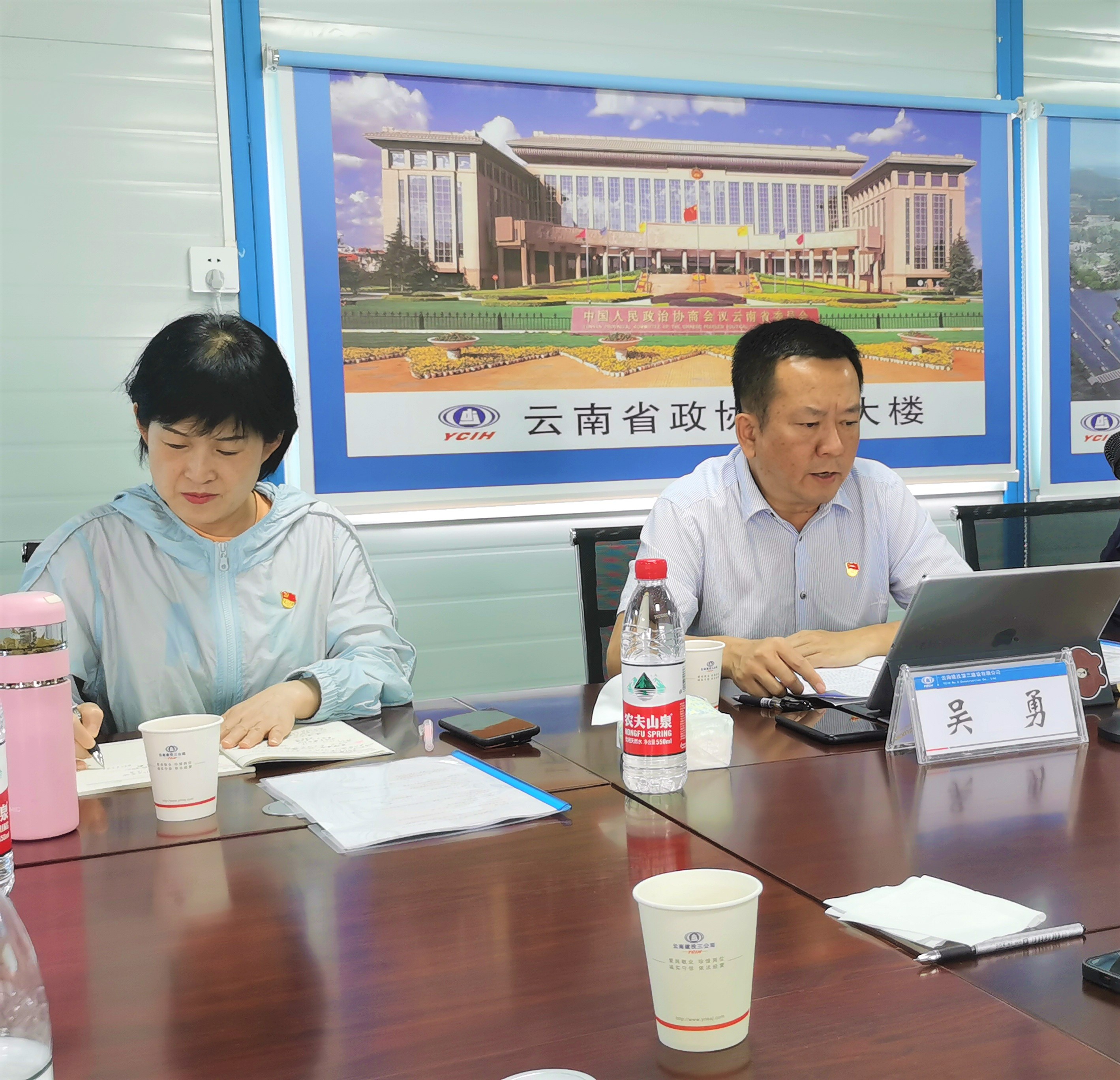 6月18日,公司黨委書記、董事長吳勇攜黨委副書記、工會主席張欣一行到第一直管項目部云南昆明血液中心呈貢項目開展黨史學習教育專題宣講,指導黨建工作。