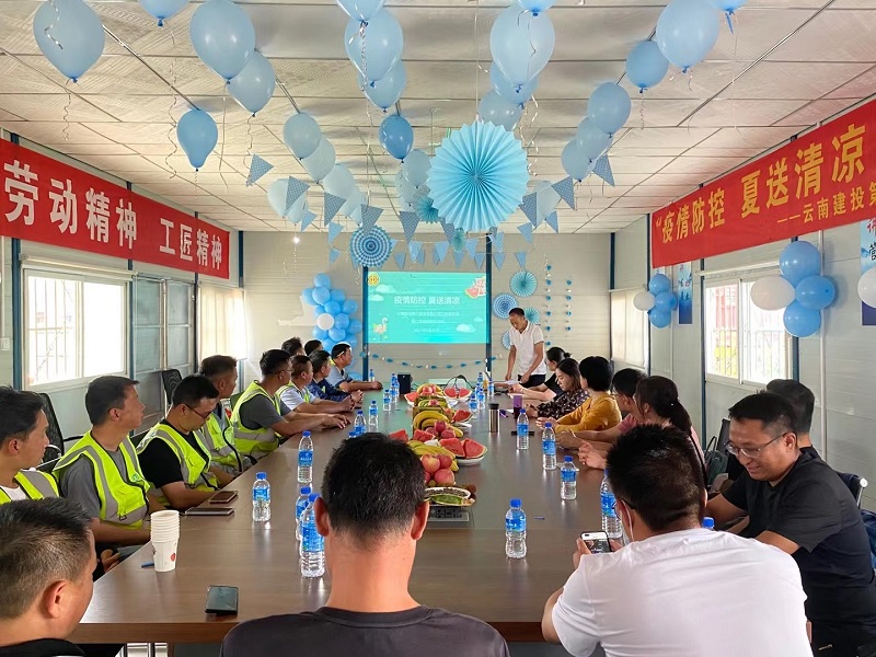 高溫時節來臨,氣溫日漸炎熱。為切實做好高溫季節防暑降溫工作,預防高溫中暑和安全生產事故的發生,5月31日,公司黨委副書記、工會主席張欣帶隊到第十七直管項目部、安裝分公司承建的麗江市傳染病醫院項目調研指導,開展“疫情防控、夏送清涼”慰問活動,并結合“我為群眾辦實事”實踐活動開展交心座談會,傾聽一線職工心聲,解決實際問題。