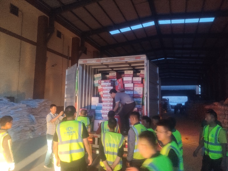 一方有難八方支援,5月22日晚,第四項目經理部滇西醫療中心建設項目5名管理人員前往大理漾濞震區參與救災活動,為災區人民送去救災物品水、泡面、火腿腸等生活物資。