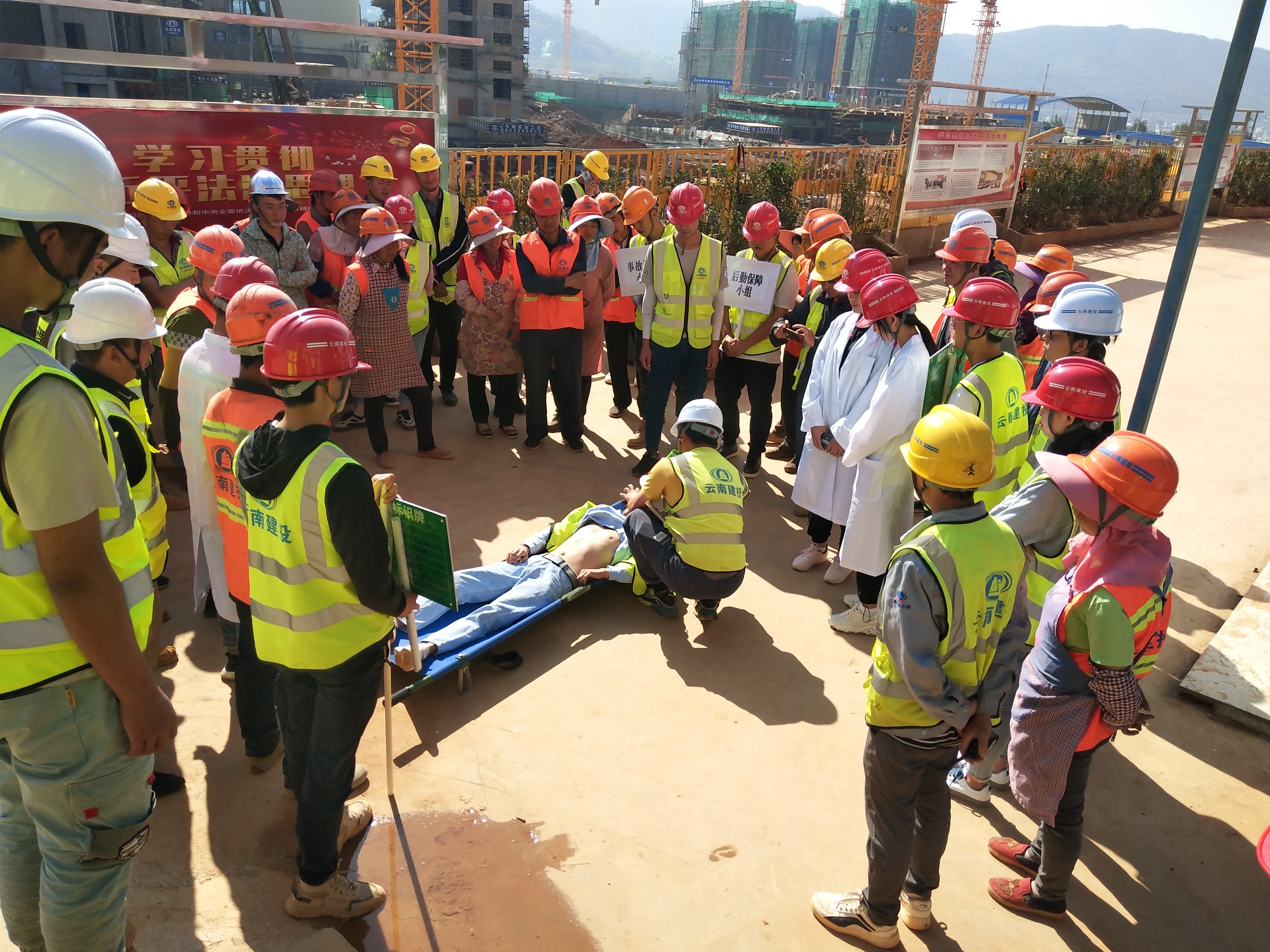 4月25日,由第一項目經理部承建的新希望 旭輝元悅小區項目以“踐行安全文化,守護美好希望”為主題開展了一場專項應急演練。建設單位、監理單位、勞務班組人員以及現場各參建單位主要負責人共計90余人參加活動。