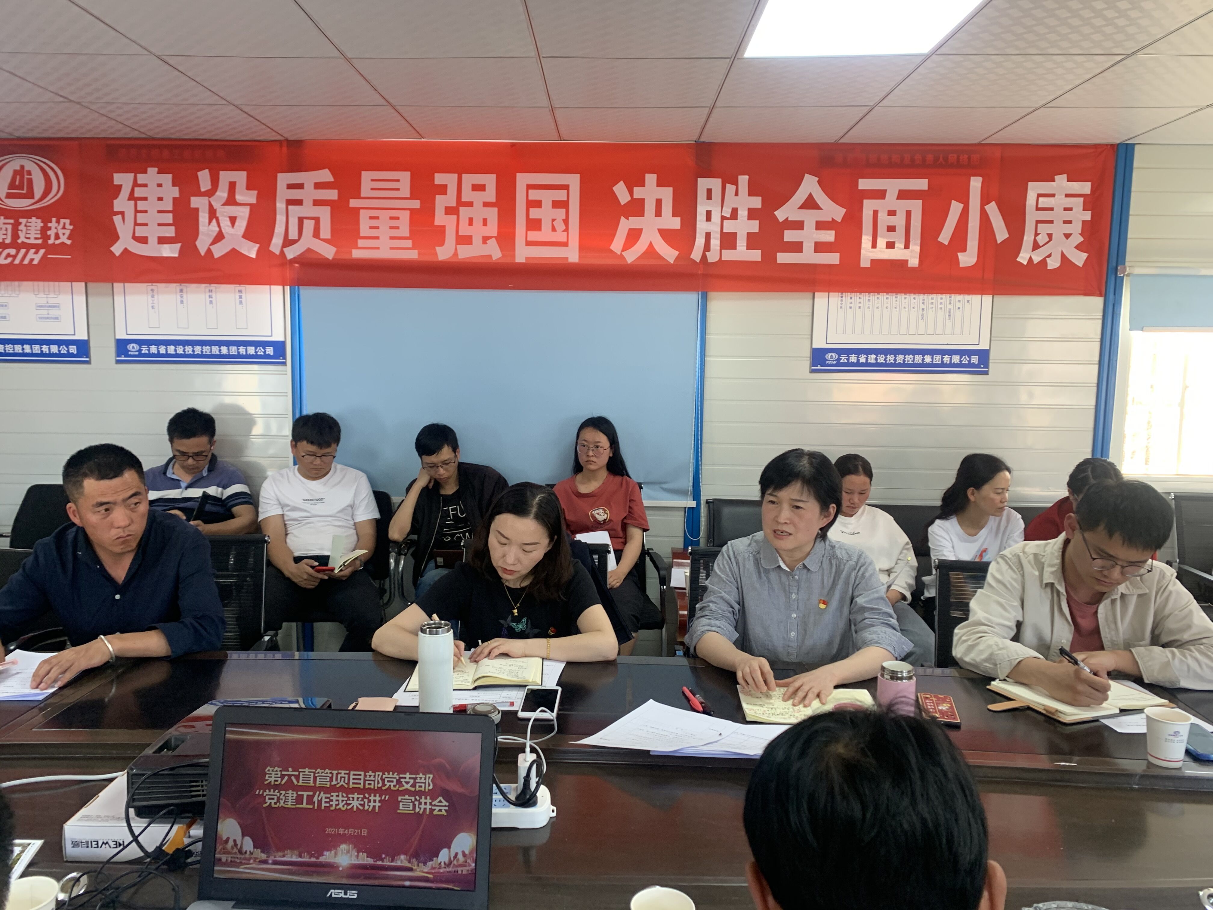 4月21日,第六直管項目部在易門麥子田項目開展“黨建工作我來講”宣講活動,公司黨委副書記、工會主席張欣率隊參加。
