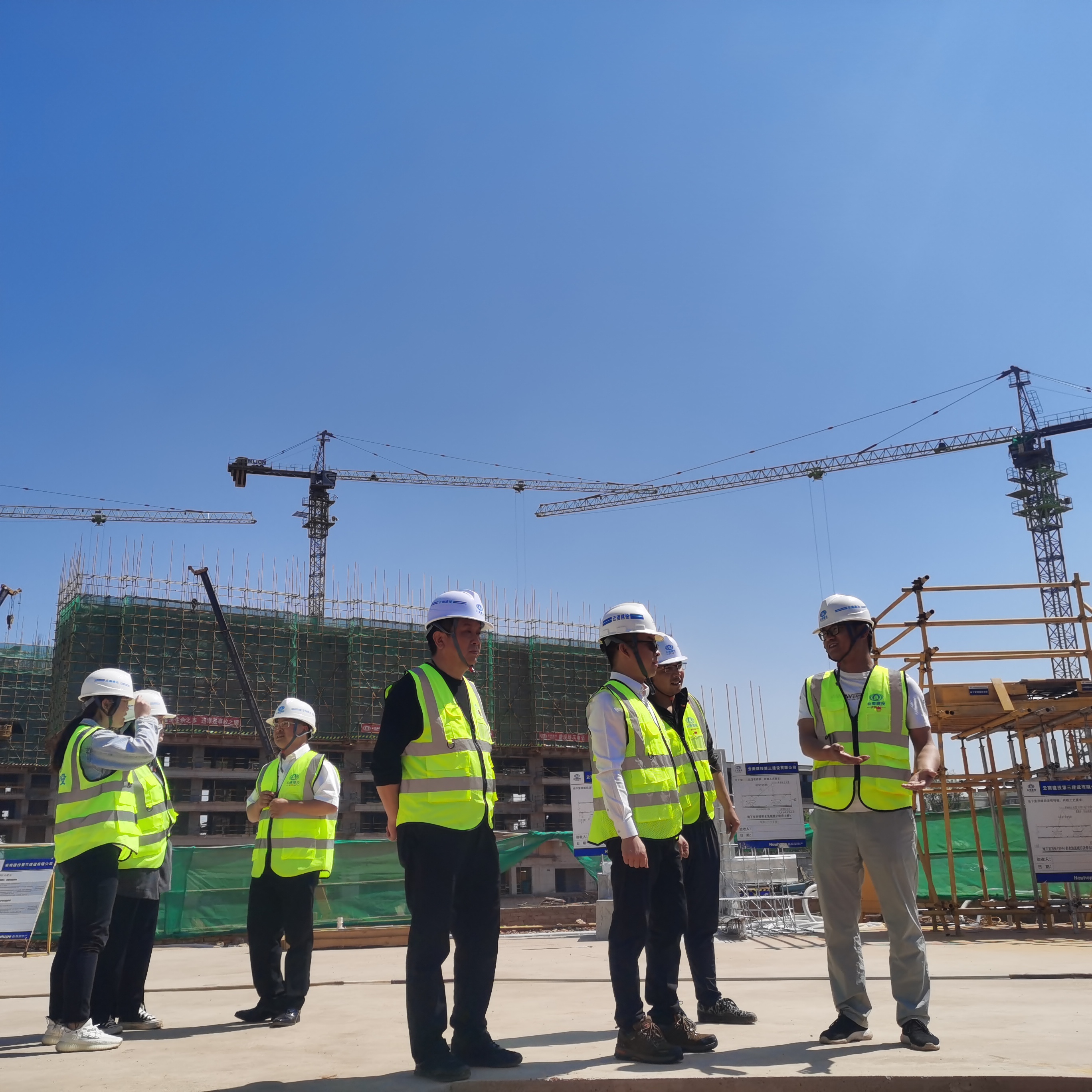 隨后,付獻智深入施工現場,詳細了解項目施工進度,詢問項目推進中遇到的困難,并提出針對性指導意見。他要求,直管部要站在全局的高度統籌協調,形成強大的工作合力,促進“四保一控一樹”的協調落實,高效地完成鋁模板拼裝工作,充分發揮鋁模技術成效,工會要及時了解職工生活,采取高溫勞動防護措施,確保把清涼和健康送入職工心坎。