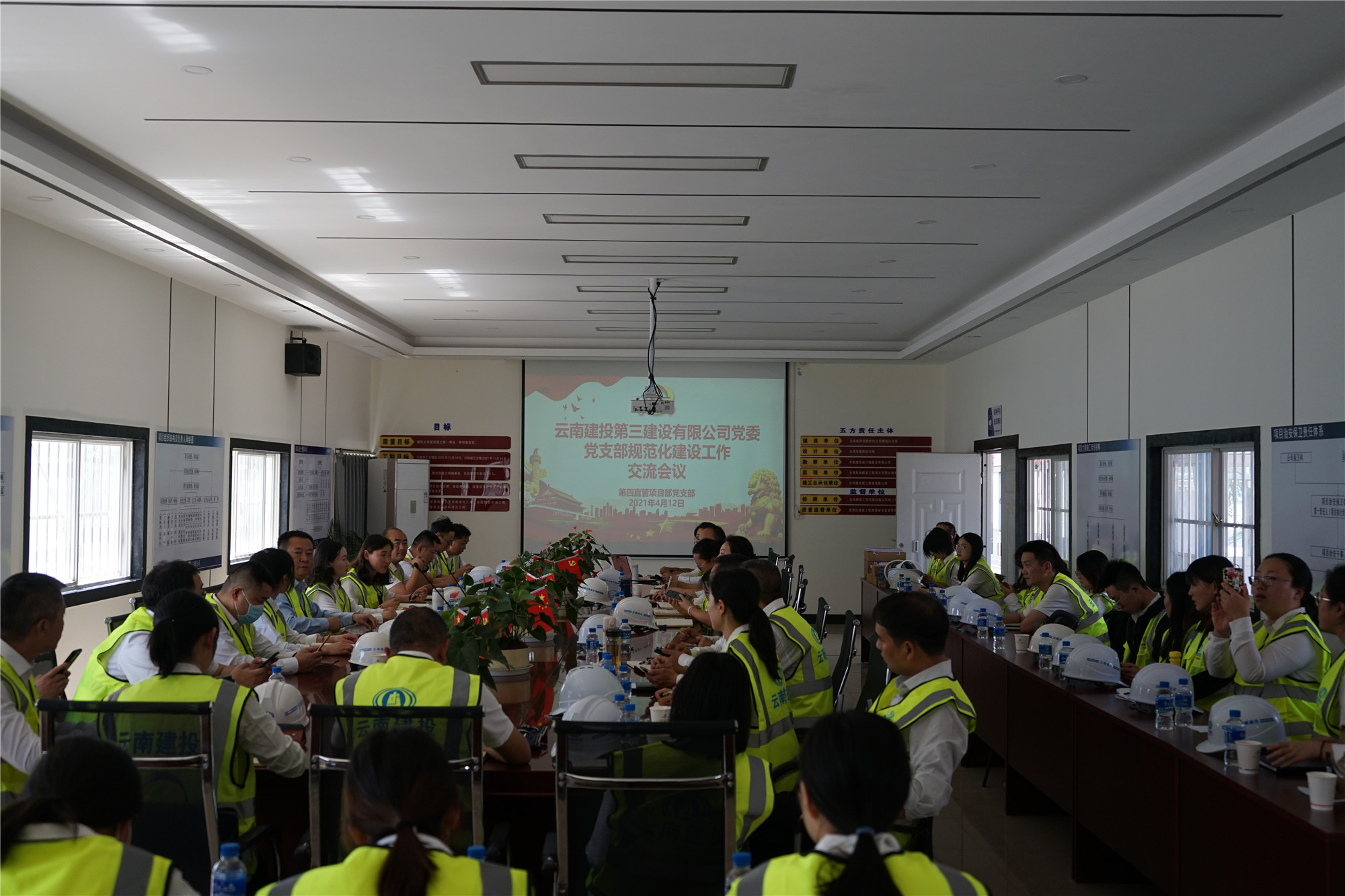 4月12日,公司黨委組織所屬各黨支部到公司第四直管項目部黨支部規范化建設示范點參觀學習。公司黨委書記、董事長吳勇帶隊,黨委工作部人員,各黨支部書記、副書記、部分工會主席、政工干事參加。