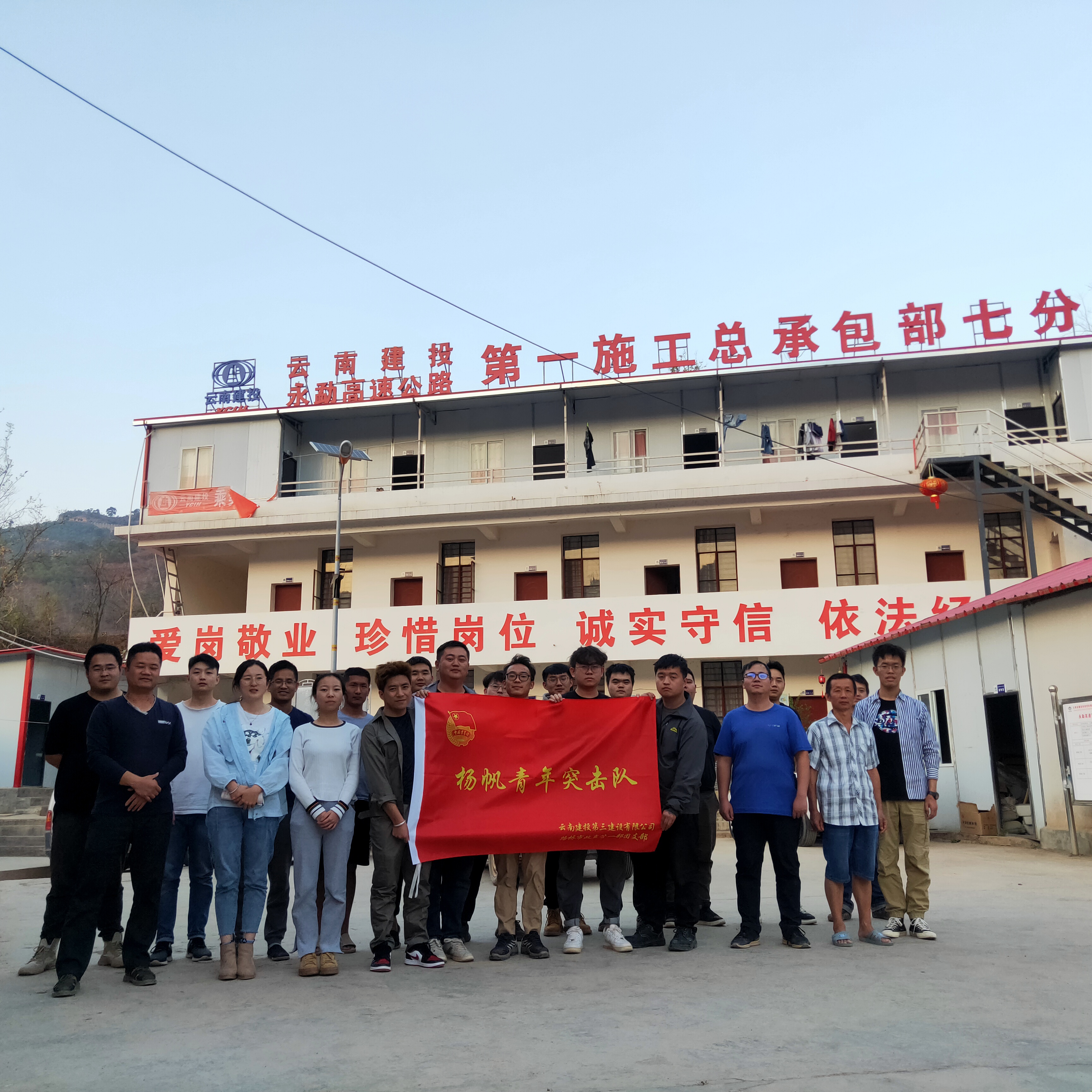 3月11日下午,公司團委在第十九直管部承建的永勐高速房建工程項目成立“星火青年突擊隊”。