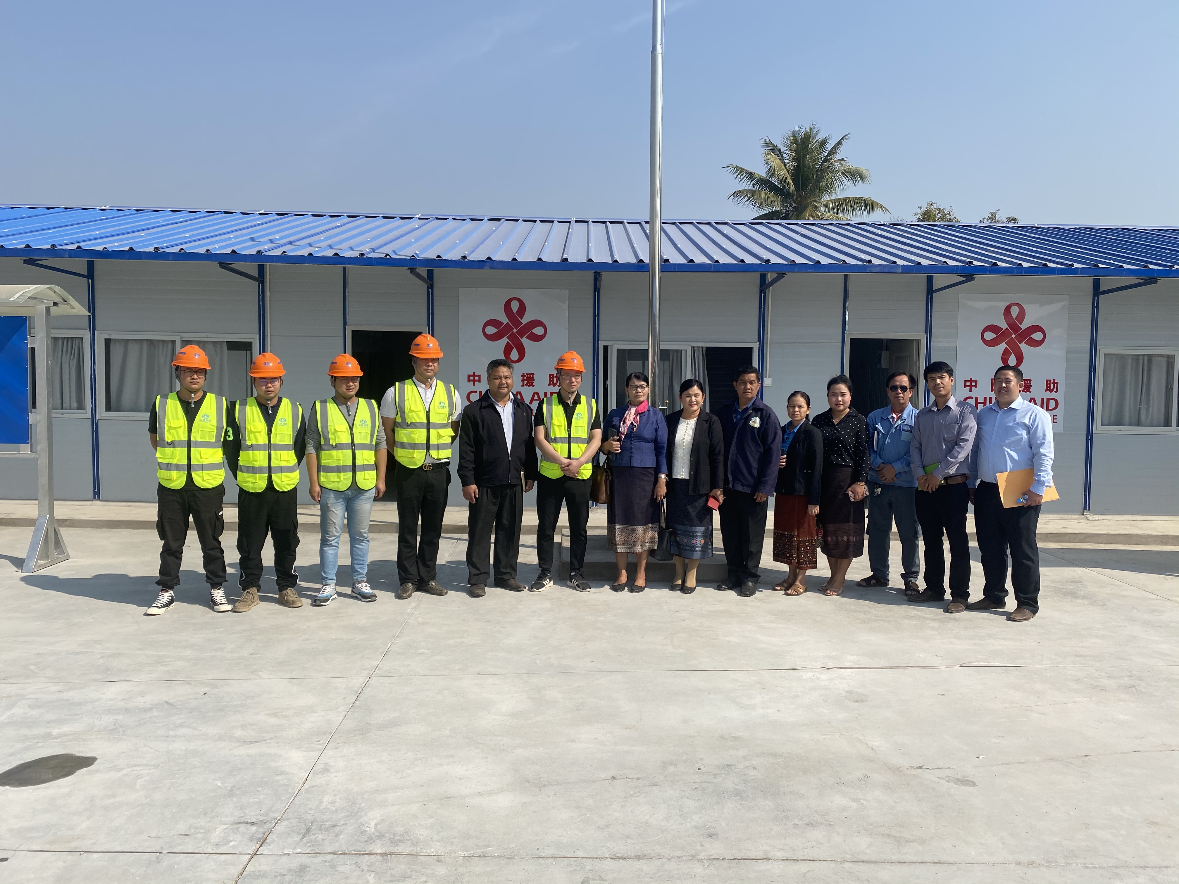 1月22日,由三公司負責施工的援老撾萬象市皮瓦中學項目臨時學校通過初期驗收。老中合作委員會處長康鵬、萬象市教育廳副廳長拉沙麗一行人對臨時學校的搭建工作給予了高度評價,康鵬對中方施工現場及工作人員的疫情防控工作表示高度認可。