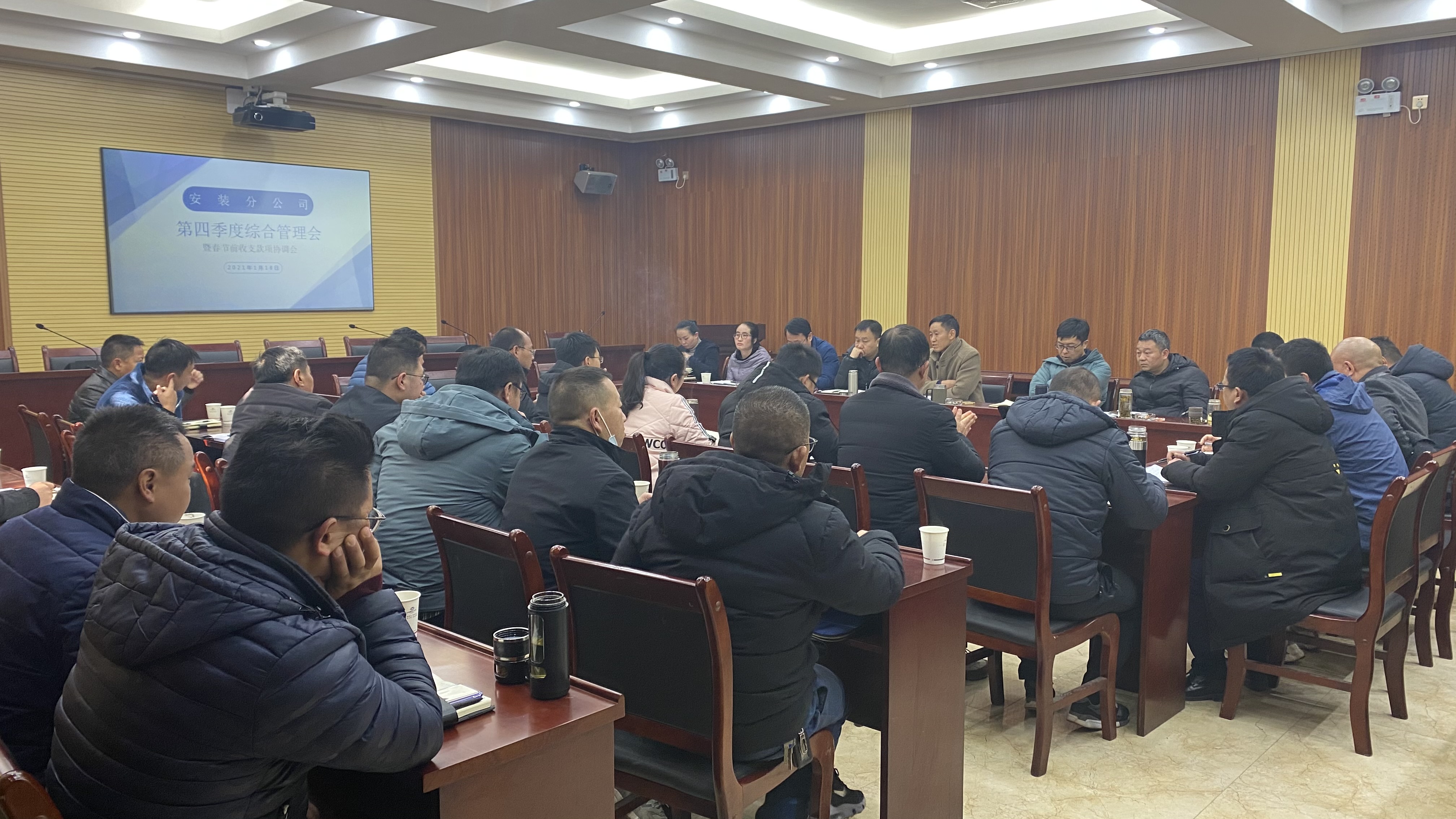 1月18日,安裝分公司組織召開了第四季度綜合管理會暨春節前維穩清欠會議,分公司班子成員、各部門負責人、項目經理共計37人參加會議。
