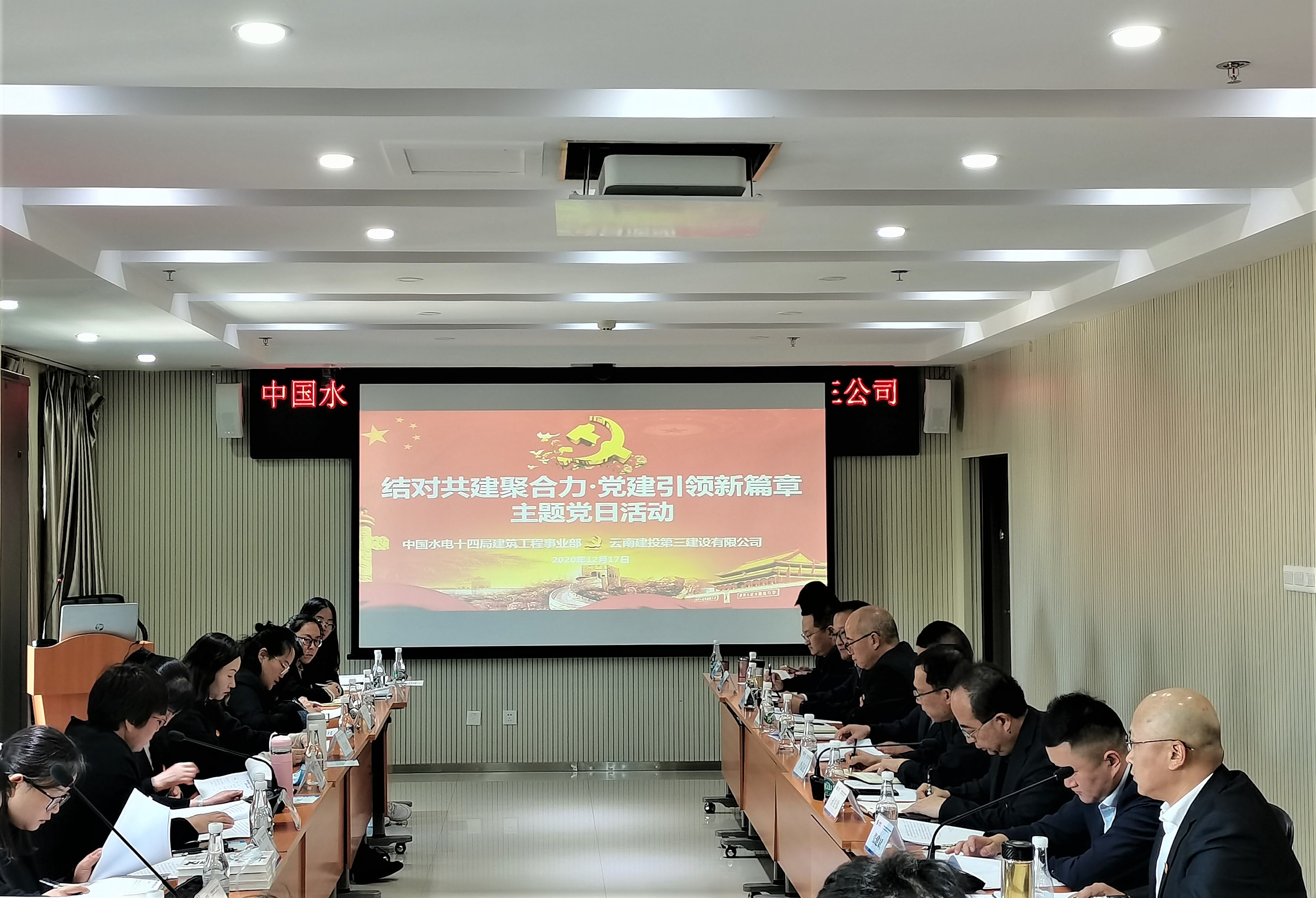 12月17日,公司黨委與中國水電十四局建筑工程事業部黨委開展“結對共建聚合力·黨建引領新篇章”主題黨日活動,活動在建筑工程事業部機關8樓會議室舉行。