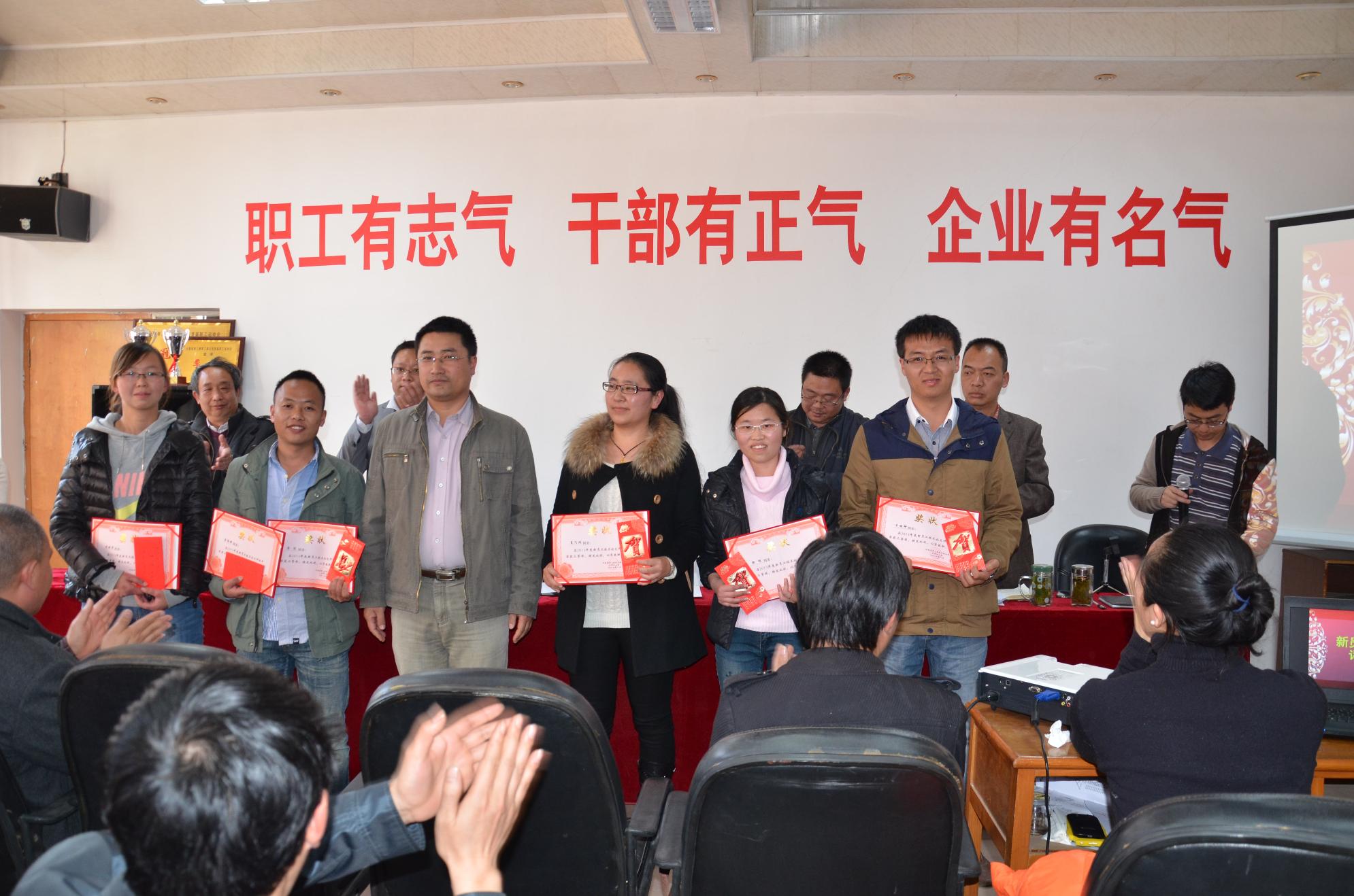 下午,最激動人心的頒獎時刻到來,本次安裝分公司頒獎有特色,獎項多,大獎大,最佳項目、最佳部門分別獲15000元、10000元大獎,科技進步獎、經營突出貢獻獎、最佳項目經理、最佳技術負責人、最佳材料員……一一上臺領獎,臺下掌聲如潮。在分公司經理嚴福明進行2013年總結回顧和2014年展望之后,公司工會主席彭云致辭,他對安裝分公司提了十點要求,寄語分公司加快發展步伐、加強管理再創一個輝煌的2014年。