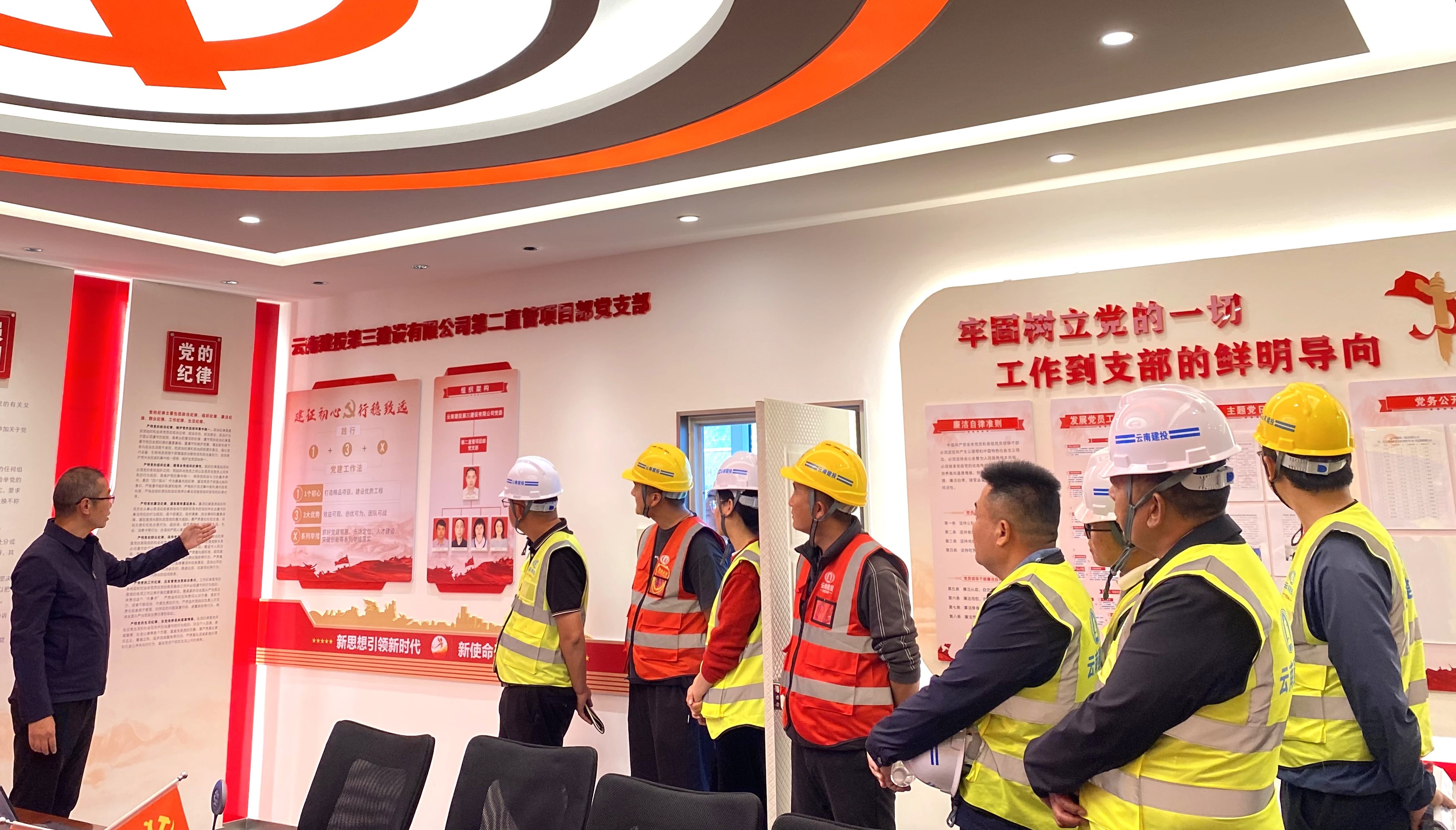 在項目負責人的引導下,一行人認真了解項目建設情況、管理制度、人員組織架構、安全文明施工等內(nèi)容,仔細參觀黨建活動陣地和職工書屋,學習黨支部黨建品牌創(chuàng)建、黨建與業(yè)務工作深度融合的經(jīng)驗做法和特色亮點,對三公司不斷強化黨建引領促進高質量發(fā)展的顯著成效表示贊許。在數(shù)控中心展廳,一行人認真了解AI高點巡檢及塔機安全監(jiān)控等數(shù)字化管控措施。