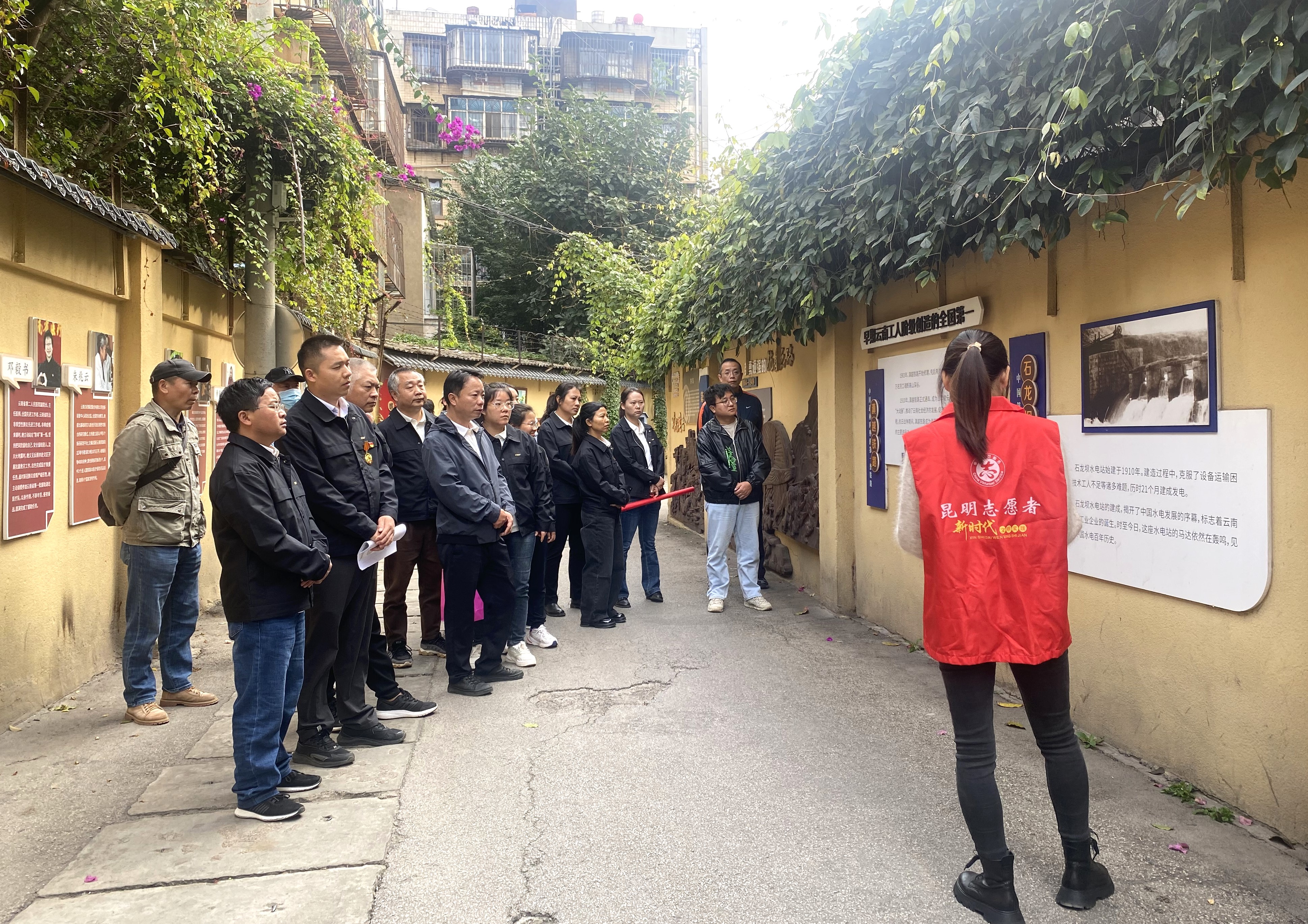 20余名黨員共同參觀五華區(qū)篆西巷工人文化長廊,在新聞里社區(qū)講解員的引導(dǎo)下,大家通過浮雕、圖文展板、歌詞墻等內(nèi)容,詳細(xì)了解相關(guān)歷史,回望云南省工人階級英勇頑強(qiáng)的抗?fàn)幹贰⑻剿髑斑M(jìn)的建設(shè)之路、改革開放的發(fā)展之路、昂揚奮進(jìn)的騰飛之路,領(lǐng)略云南工人階級的政治本色、價值取向、光榮傳統(tǒng)和奮斗風(fēng)采。