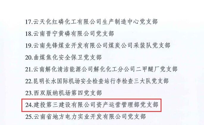 近日,云南省國資委黨委下發(fā)關(guān)于命名2022年度“規(guī)范化建設(shè)示范黨支部”的決定,其中,公司資產(chǎn)運(yùn)營管理部黨支部榮登榜單,這是公司所屬黨支部第二次獲評(píng)。