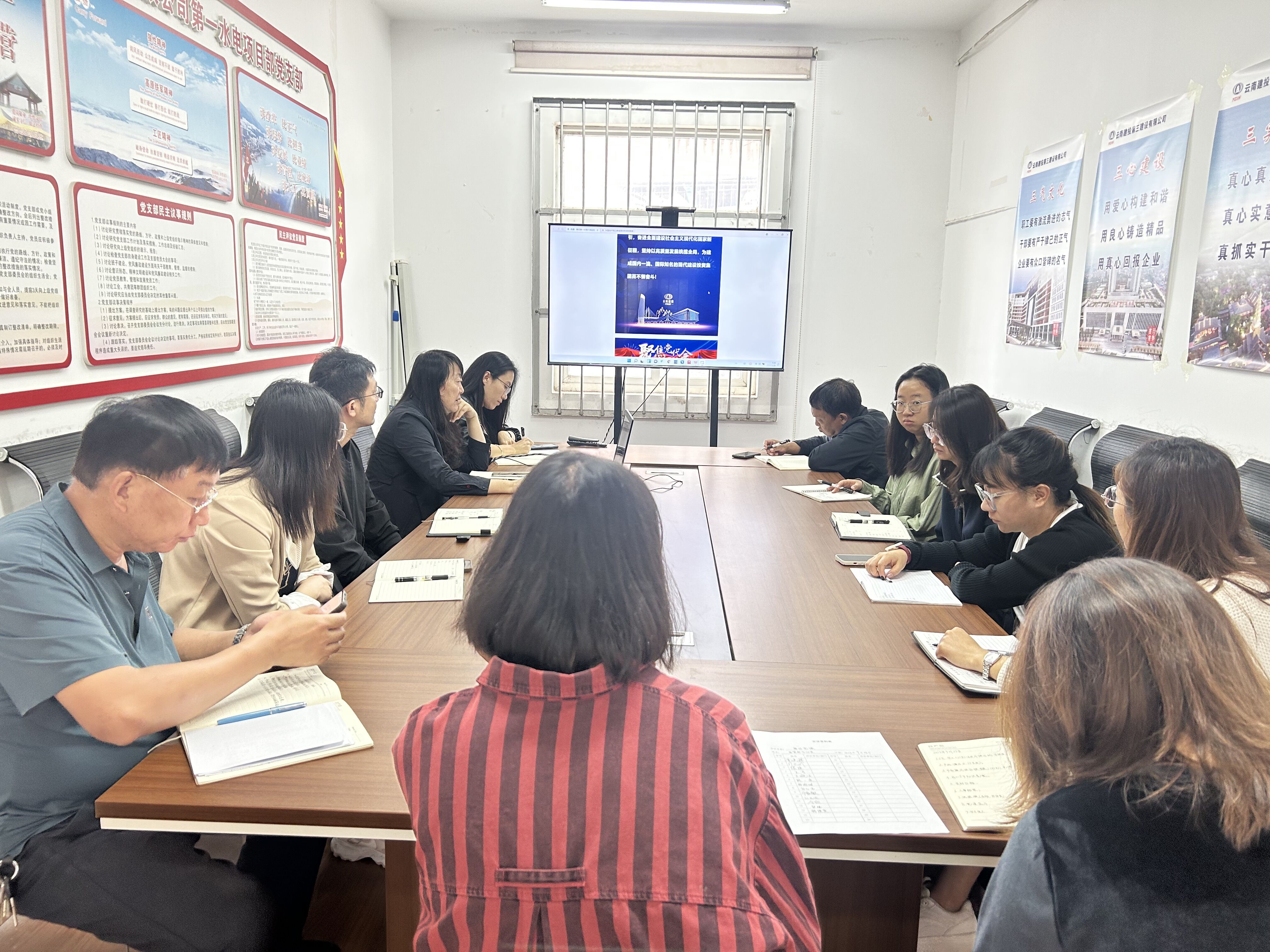 9月27日下午,省外事業(yè)部在直管部黨員活動室和曲靖市華祥科技有限公司新能源電池環(huán)保循環(huán)利用項目二期擴建工程項目部會議室宣貫集團第一次黨代會精神。