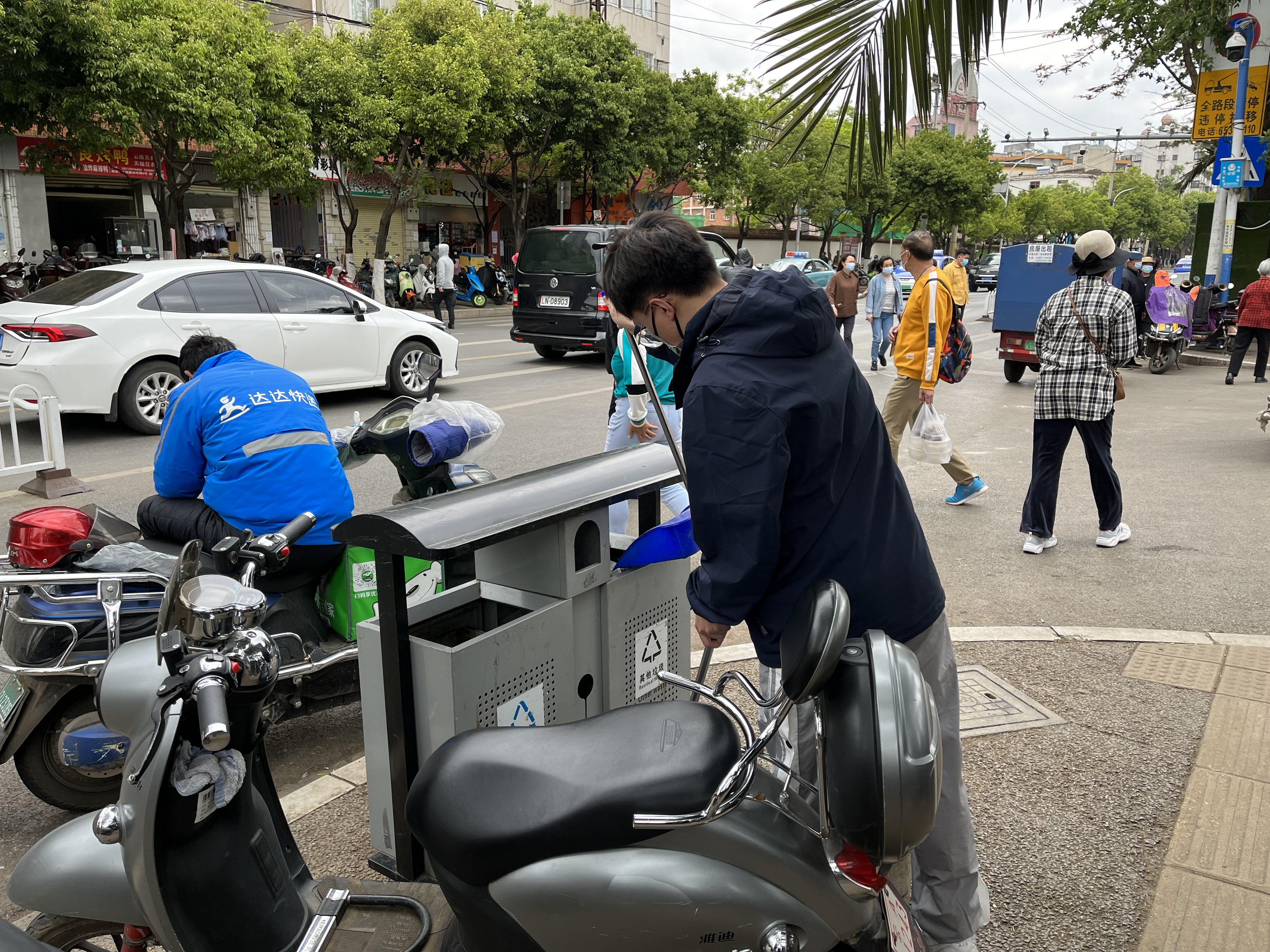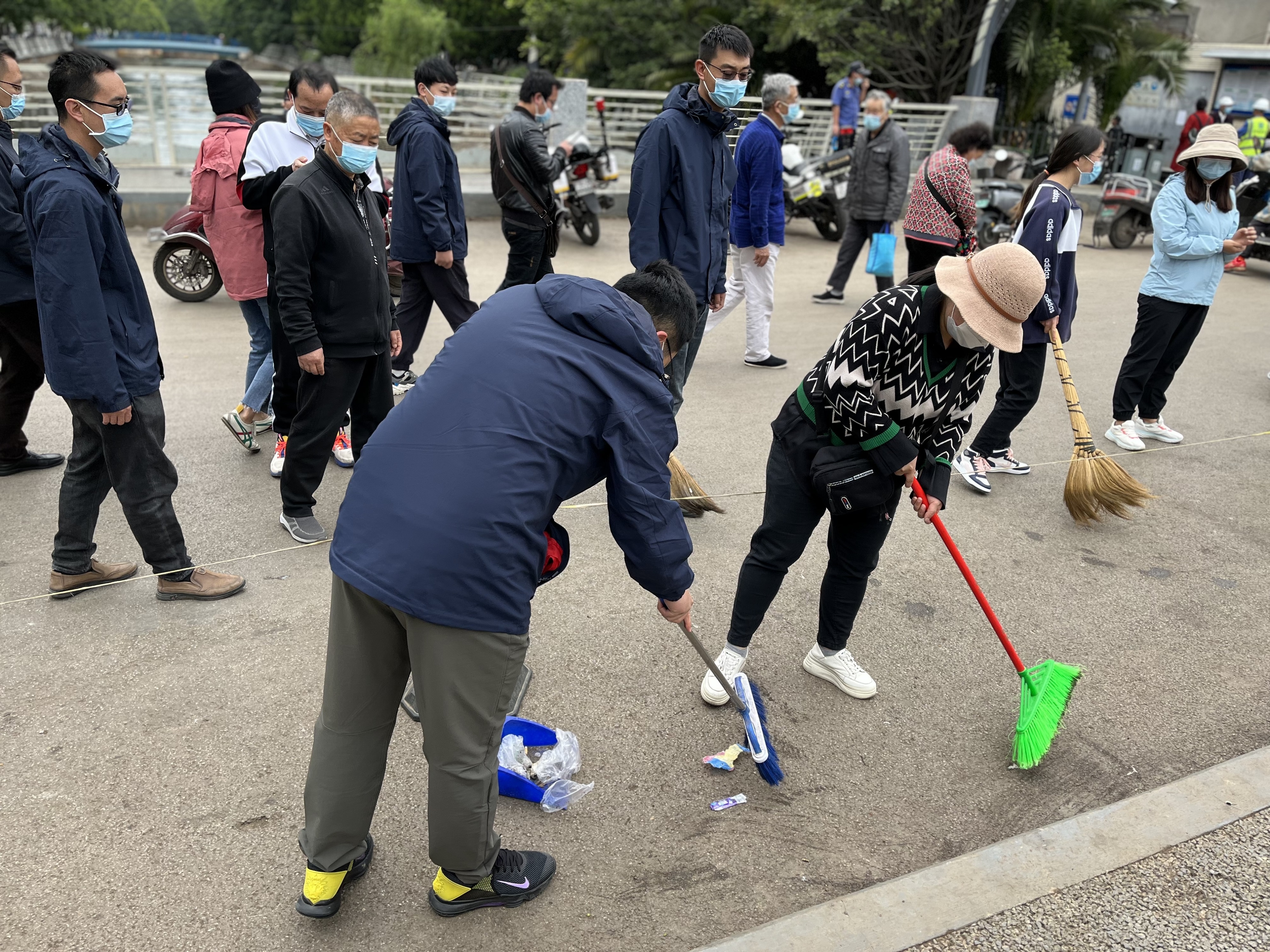 撿拾煙頭、廢紙片、食品包裝等垃圾