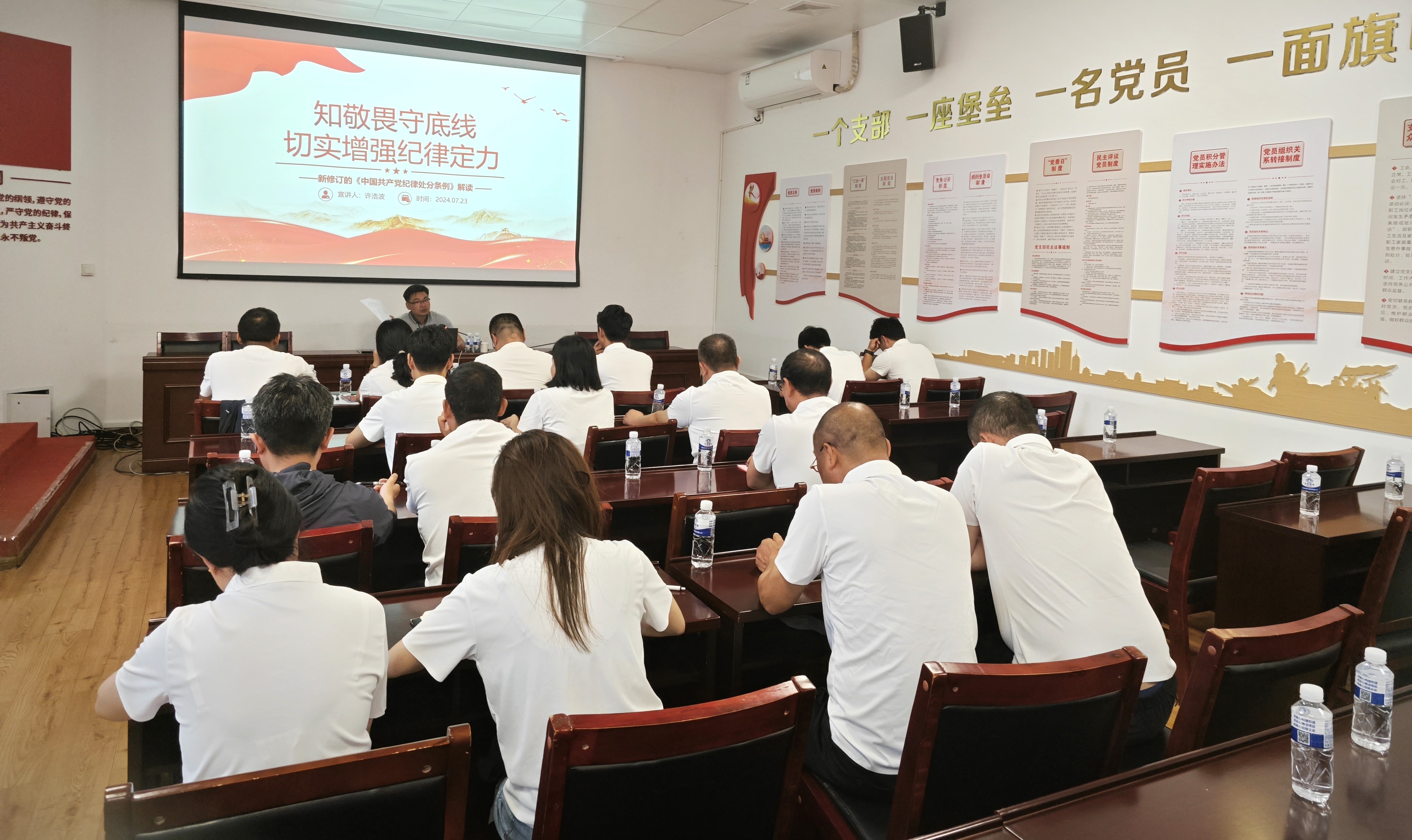 7月23日上午,公司副總經(jīng)理、總經(jīng)濟(jì)師許浩波以《知敬畏守底線 切實(shí)增強(qiáng)紀(jì)律定力》為題,為資產(chǎn)運(yùn)營(yíng)管理部全體黨員干部職工共計(jì)30余人講授黨紀(jì)學(xué)習(xí)教育專題黨課。
