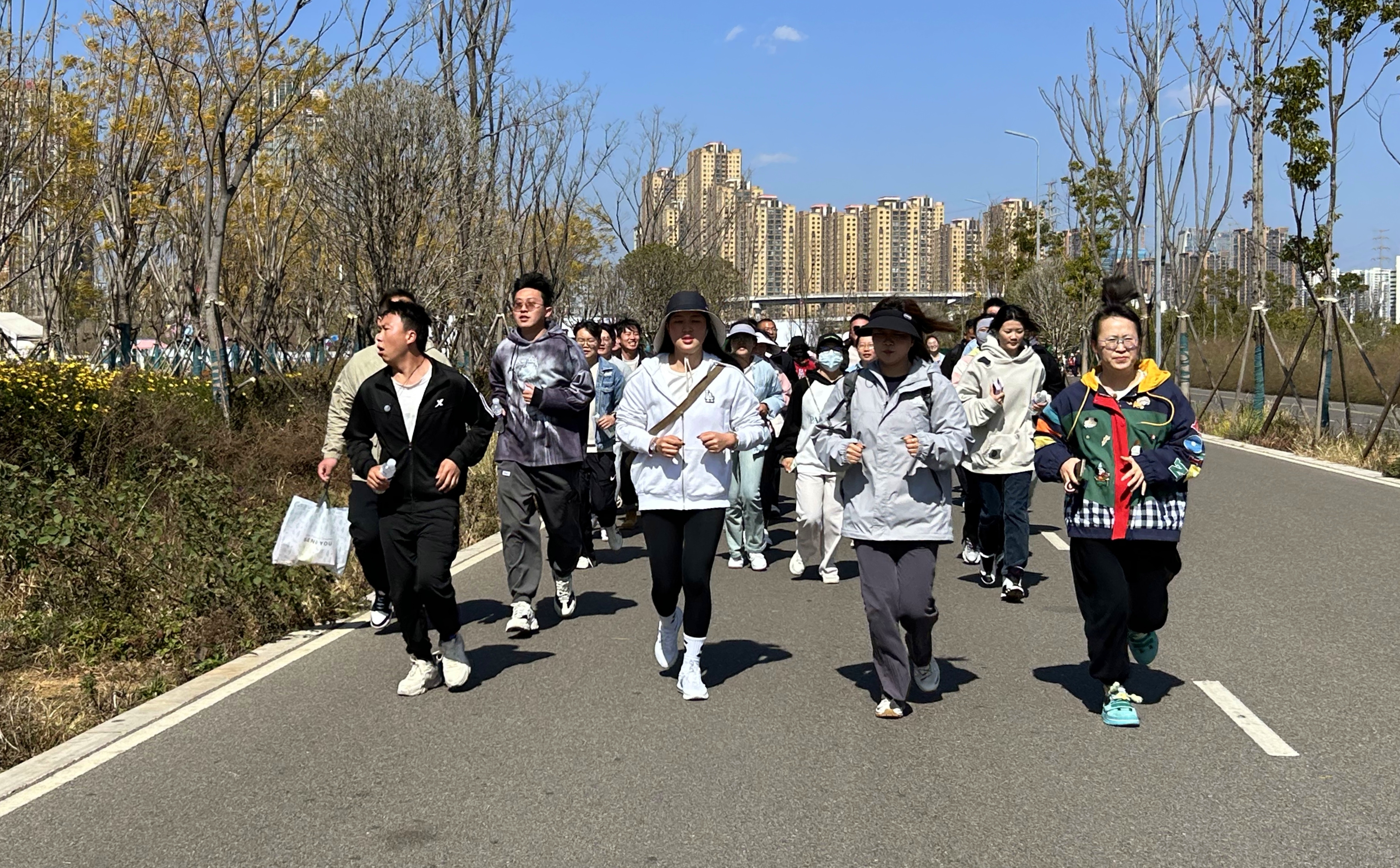 開跑前,在熱身教練的帶領下,大家有序地舒展身體、拉伸筋骨,用最好的狀態(tài)迎接奔跑。伴隨著響亮的開跑指令,團員青年沖出起跑線,用激情的姿態(tài)奔跑著、吶喊著、歡笑著,沿著滇池綠道闊步向前,在奔跑中相互鼓勵、并肩前行,形成了一道亮麗的風景線。