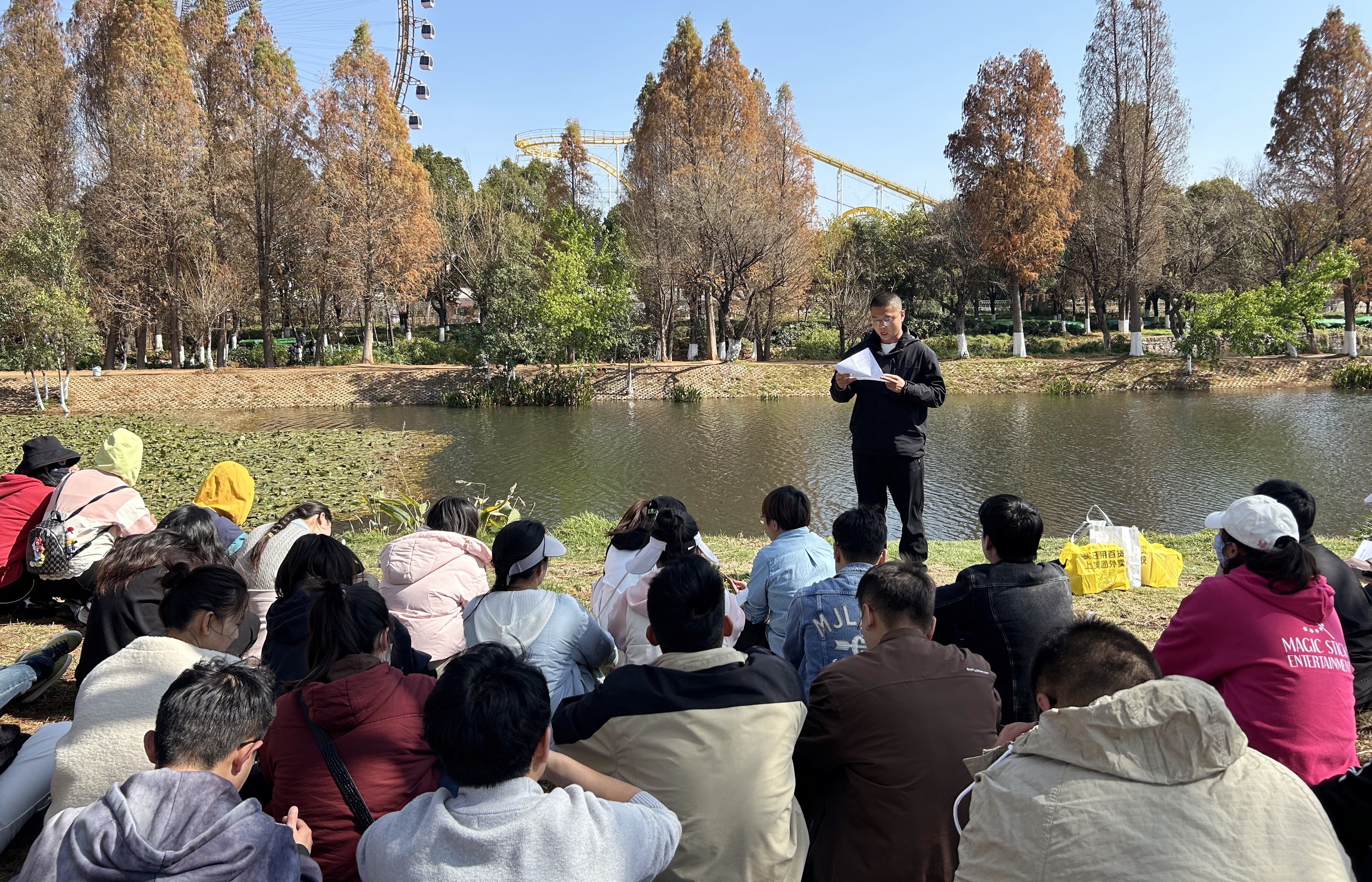 此次活動路線為一條全程約5公里的環(huán)湖路線,途中設置多個闖關環(huán)節(jié),參與者依次挑戰(zhàn)黨史、團史、集團及公司企業(yè)文化等知識答題?;顒幼詈筮€開展了讀書分享環(huán)節(jié),團員青年圍繞書籍分享關于青年的使命擔當、成長路徑等內容,現場氣氛熱烈。