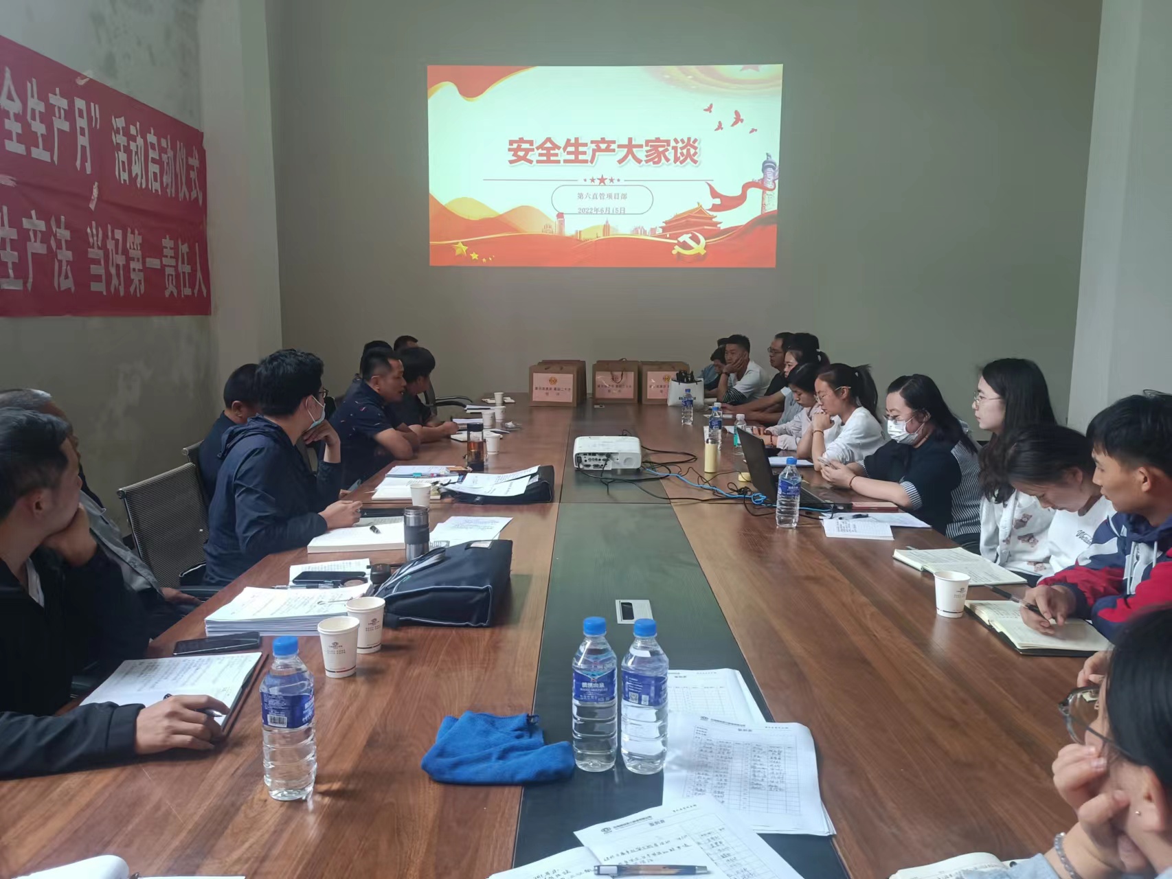 第六直管項目部團支部在易門縣城山市政基礎(chǔ)設(shè)施建設(shè)項目開展青年安全生產(chǎn)示范崗創(chuàng)建活動,組織團員青年們開展安全教育培訓,觀看《生命重于泰山》教育片。隨后,在“安全大家談”座談會中,大家積極交流心得、分享經(jīng)驗,為安全工作建言獻策。會后,安全員帶領(lǐng)大家進行安全大檢查。